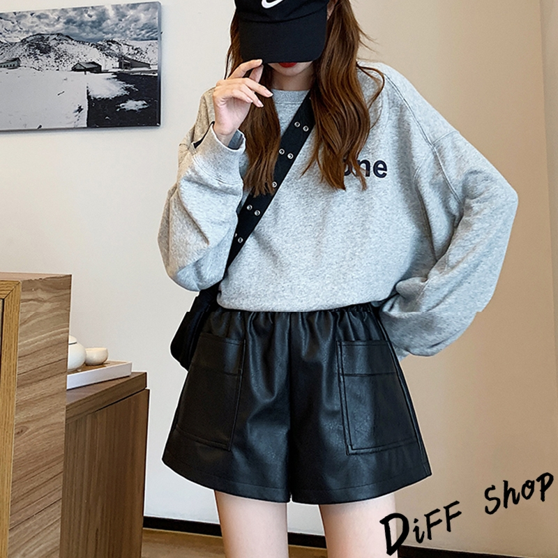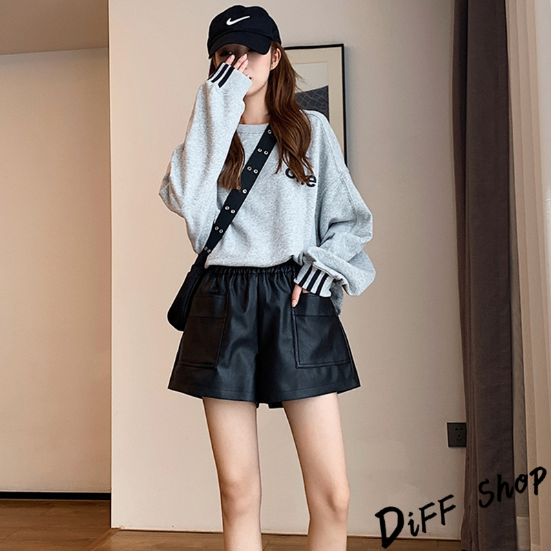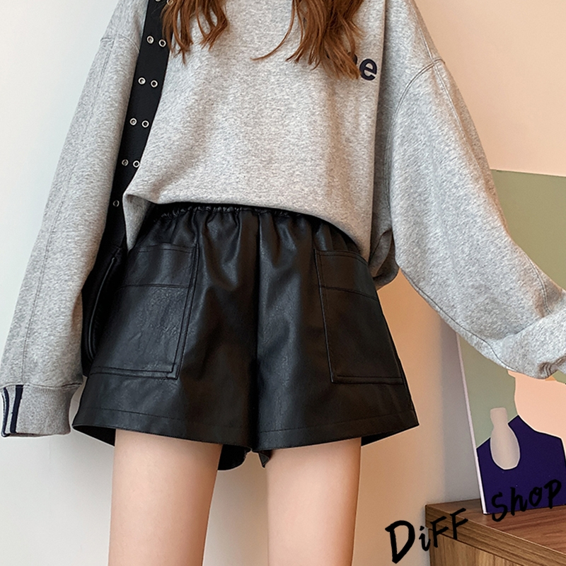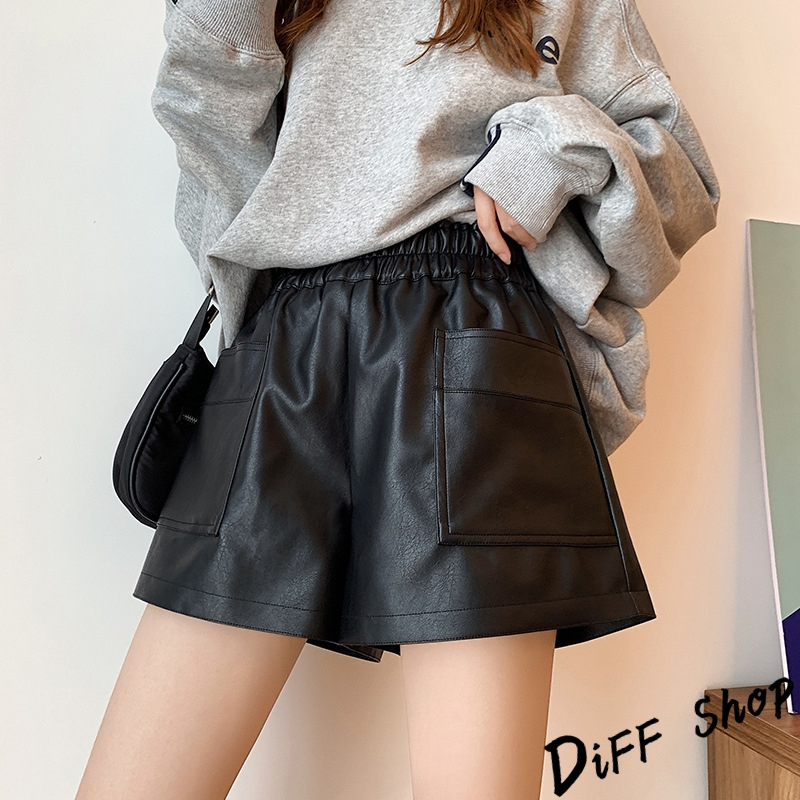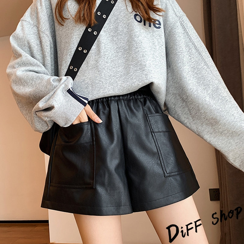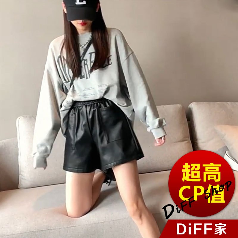 【DIFF】韓版寬鬆顯瘦高腰皮短褲 皮褲 休閒褲 褲子 運動短褲 女裝 休閒短褲 寬褲 運動褲 高腰褲 黑褲【P324】【P324】黑色L號|【P324】黑色XL號|【P324】黑色M號ShortsDiFF shop