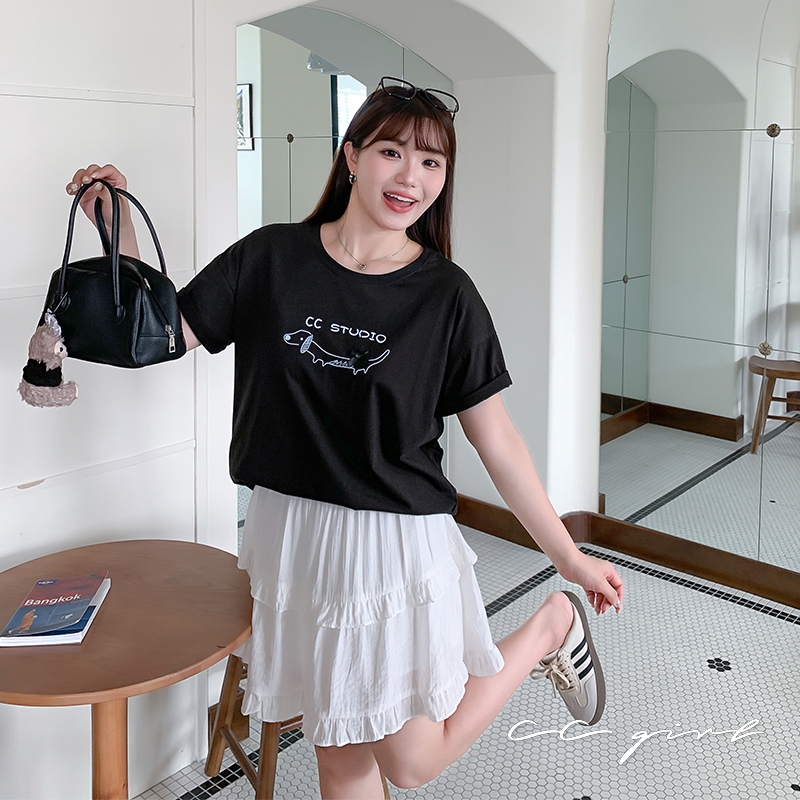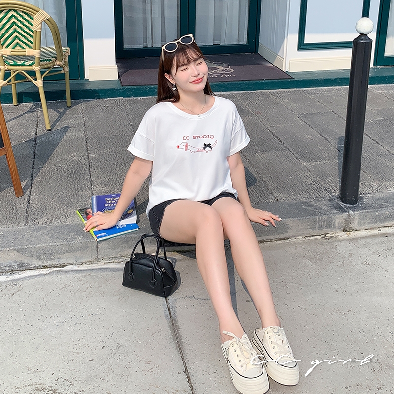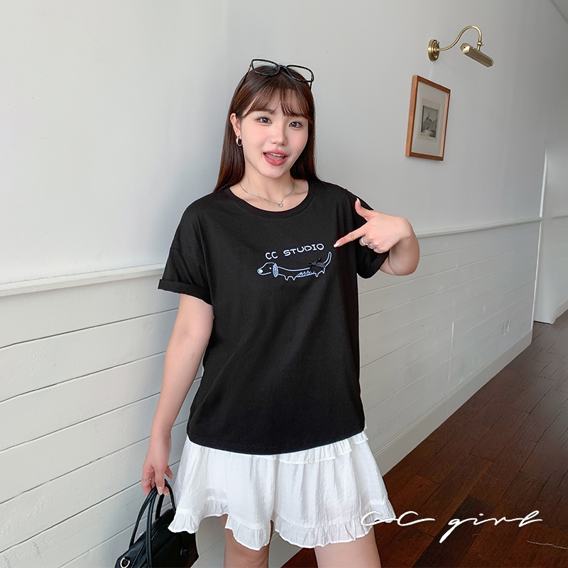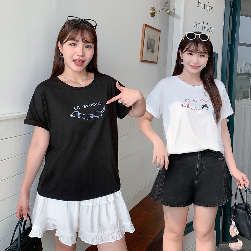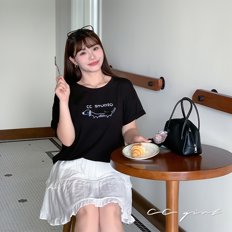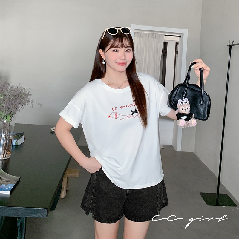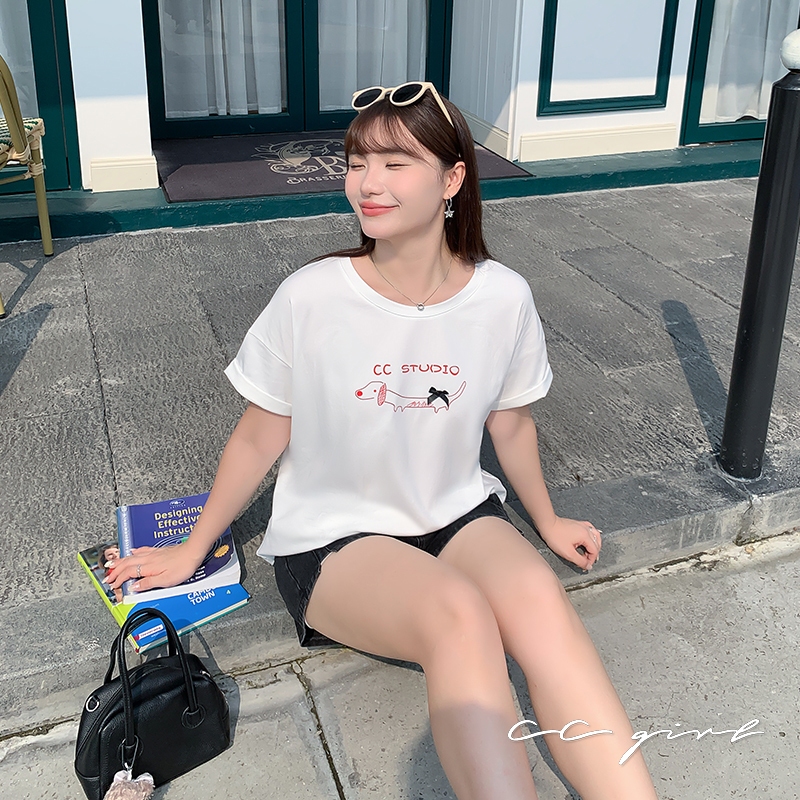 CCGIRL中大尺碼 自訂款𝑪𝑪 𝒔𝒕𝒖𝒅𝒊𝒐涼感字母印花寬鬆落肩短袖圓領上衣-共2色適M~5L《32245》大尺碼女裝自訂款CC Studio臘腸狗-經典黑,M|自訂款CC Studio臘腸狗-經典黑,L(建議L和XL適穿)|自訂款CC Studio臘腸狗-經典黑,XL(建議2L和3L適穿)|自訂款CC Studio臘腸狗-經典黑,2L(建議3L和4L適穿)|自訂款CC Studio臘腸狗-經典黑,3L(建議4L和5L適穿)|自訂款CC Studio臘腸狗-微透白,M|自訂款CC Studio臘腸狗-微透白,L(建議L和XL適穿)|自訂款CC Studio臘腸狗-微透白,XL(建議2L和3L適穿)|自訂款CC Studio臘腸狗-微透白,2L(建議3L和4L適穿)|自訂款CC Studio臘腸狗-微透白,3L(建議4L和5L適穿)T-shirtsCCGIRL中大尺碼女裝