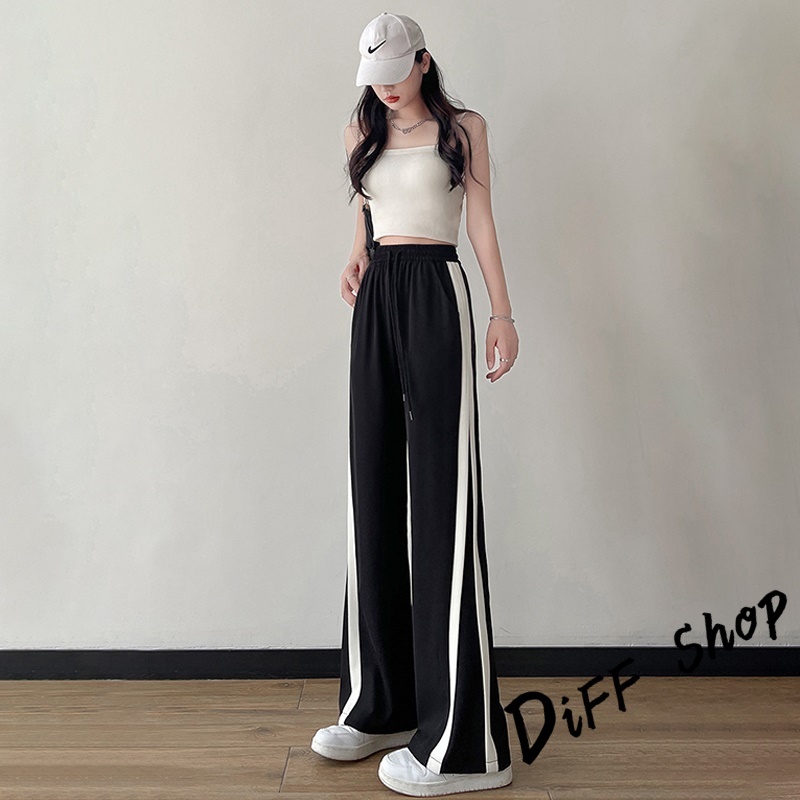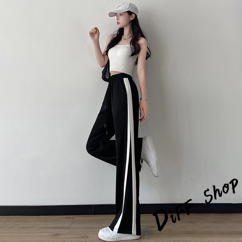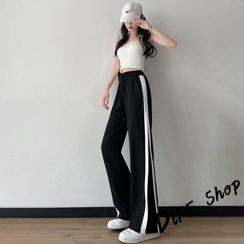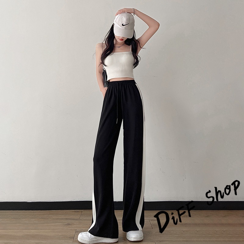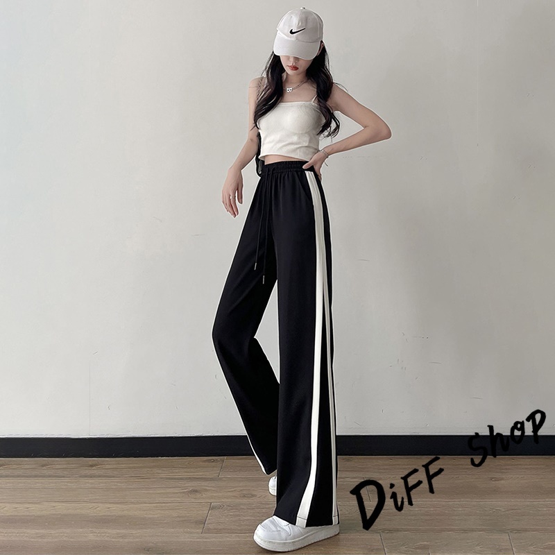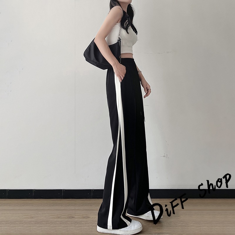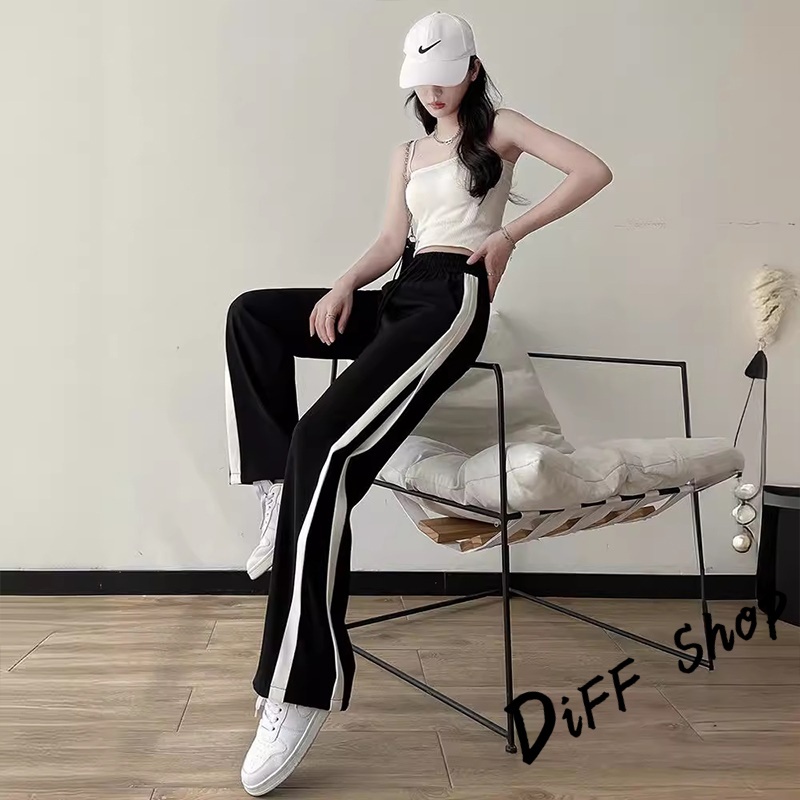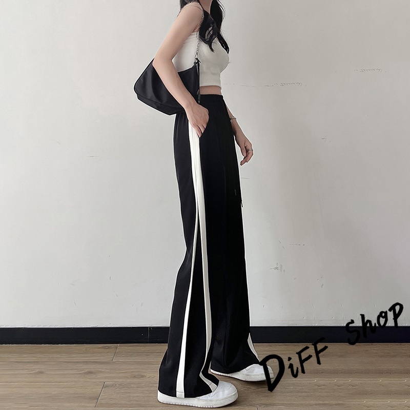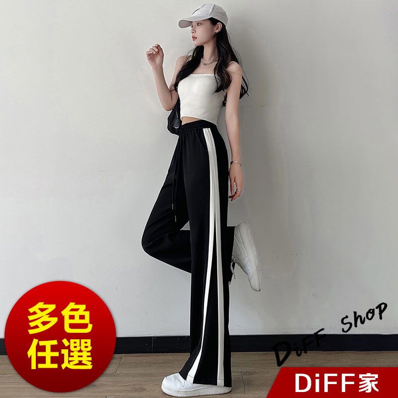 【DIFF】韓版開叉直筒黑色寬褲 褲子 長褲 休閒褲 女裝 高腰褲 拖地褲 直筒褲 黑褲【P356】【P356】黑色PantsDiFF shop