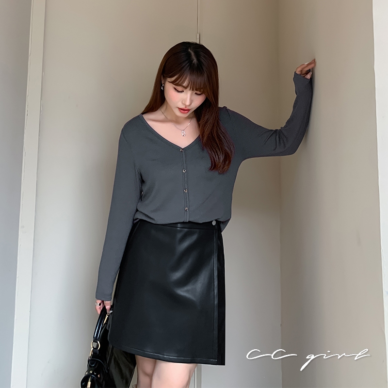 CCGIRL中大尺碼 經典百搭V領針織假排釦上衣-共兩款4色-適M~5L《91046短袖/31260長袖》中大尺碼上衣