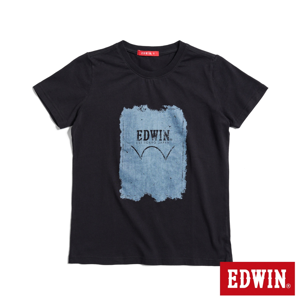 EDWIN 女款 人氣復刻款 牛仔印花LOGO短袖T恤(黑色)L|S|MT-shirtsEDWIN 官方旗艦店