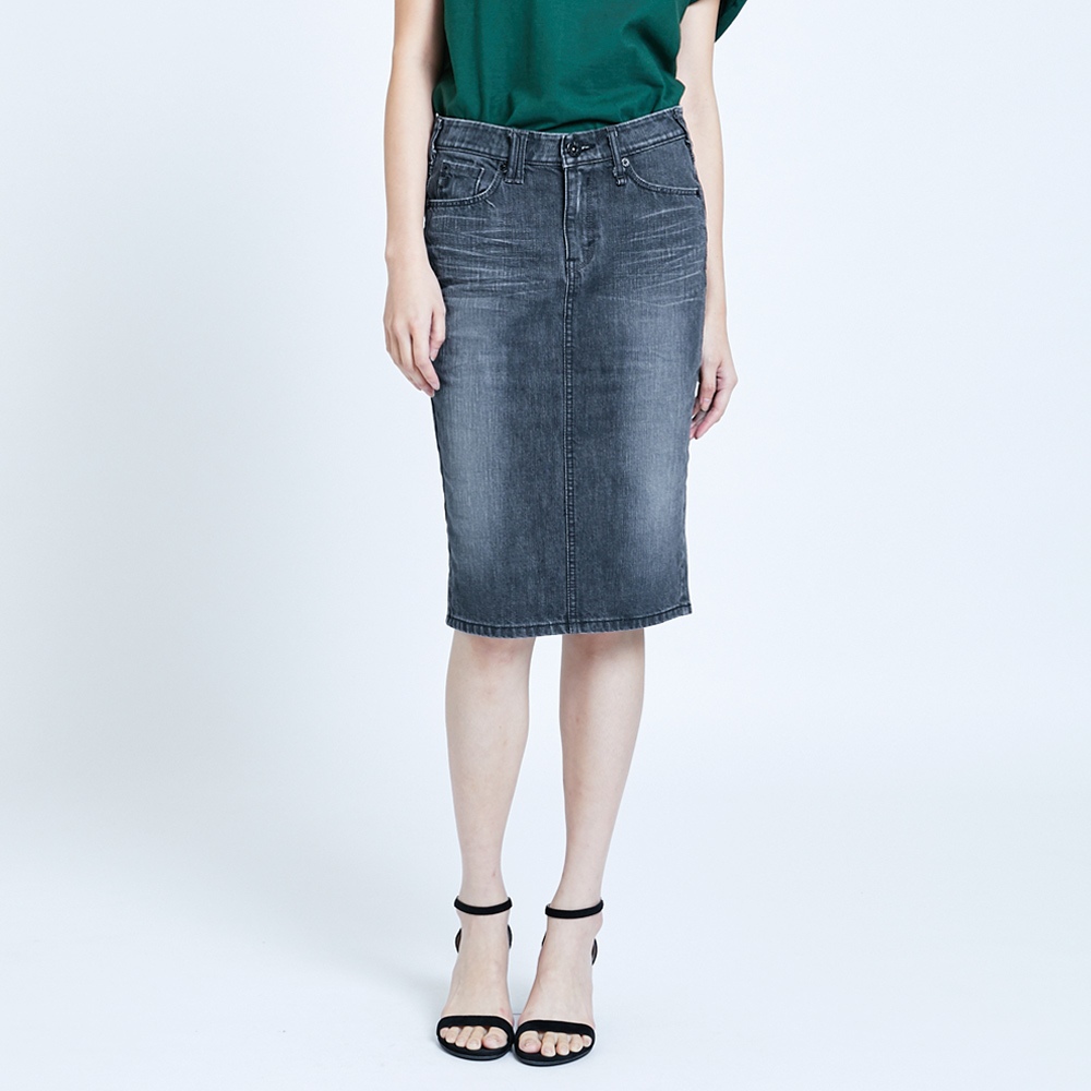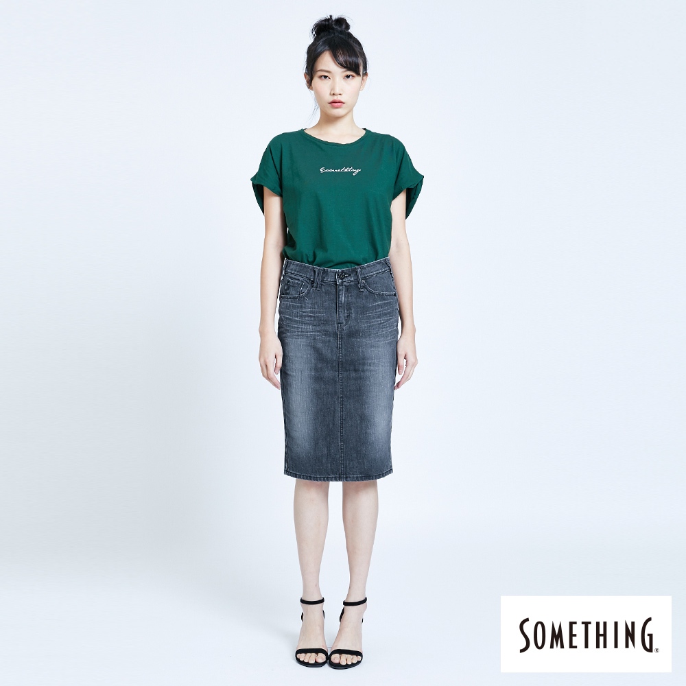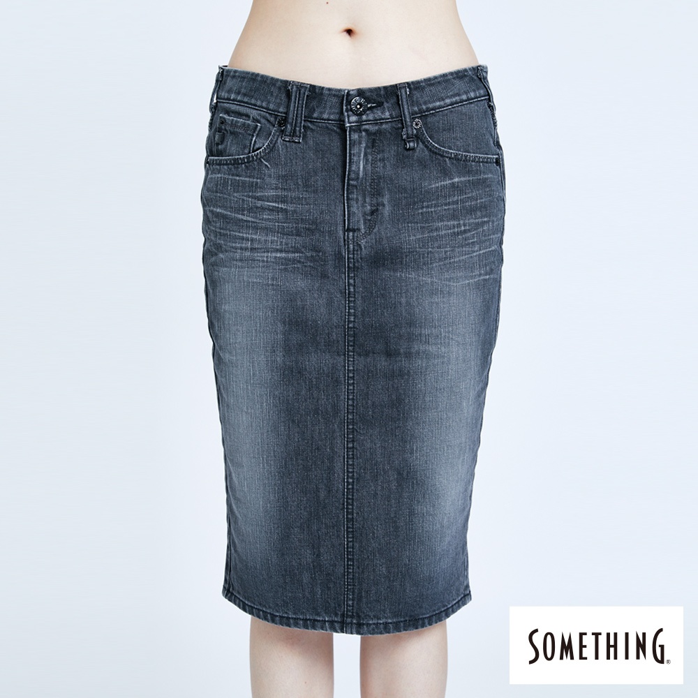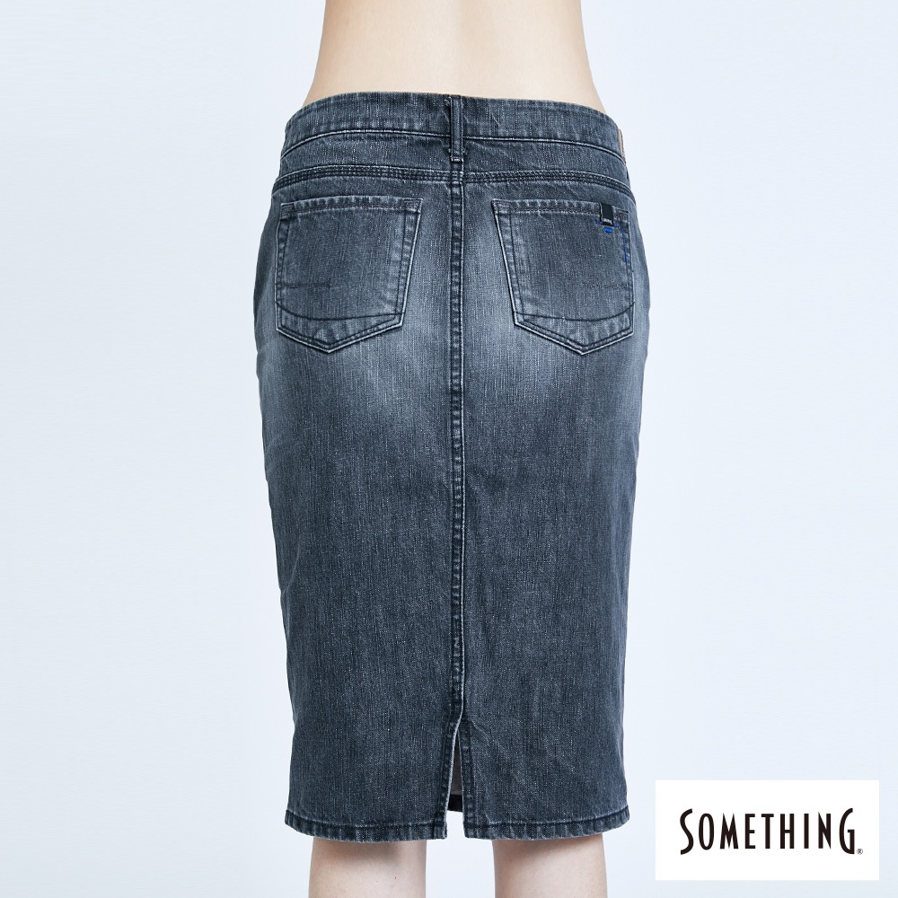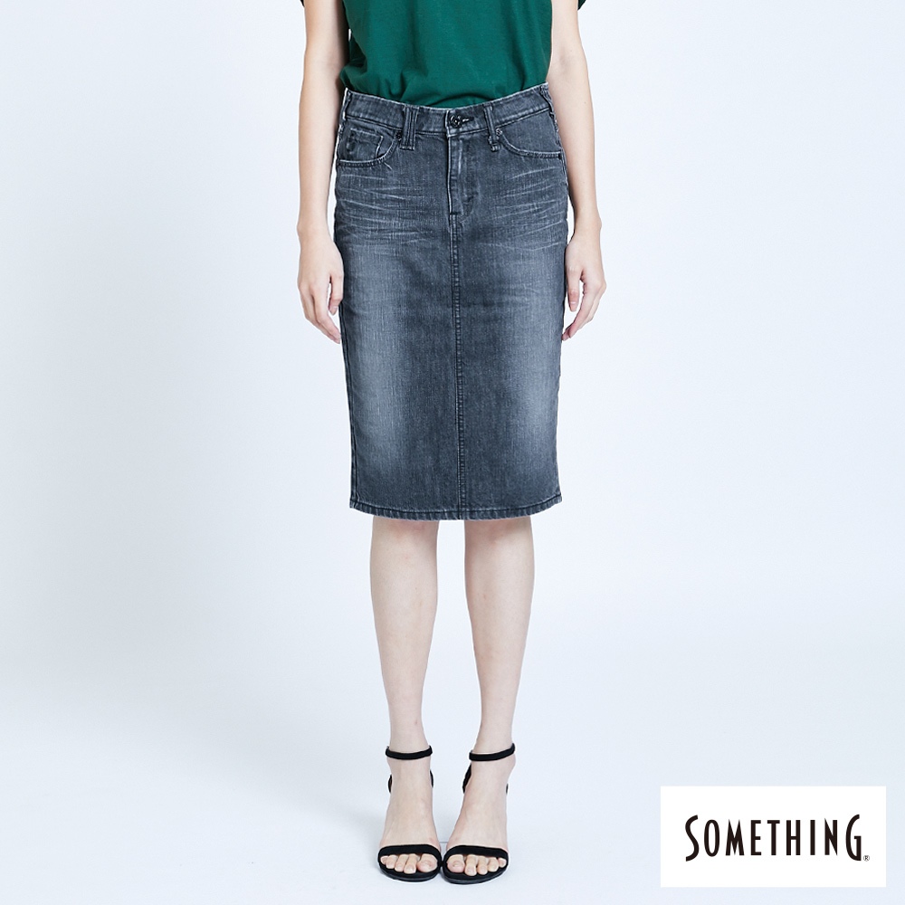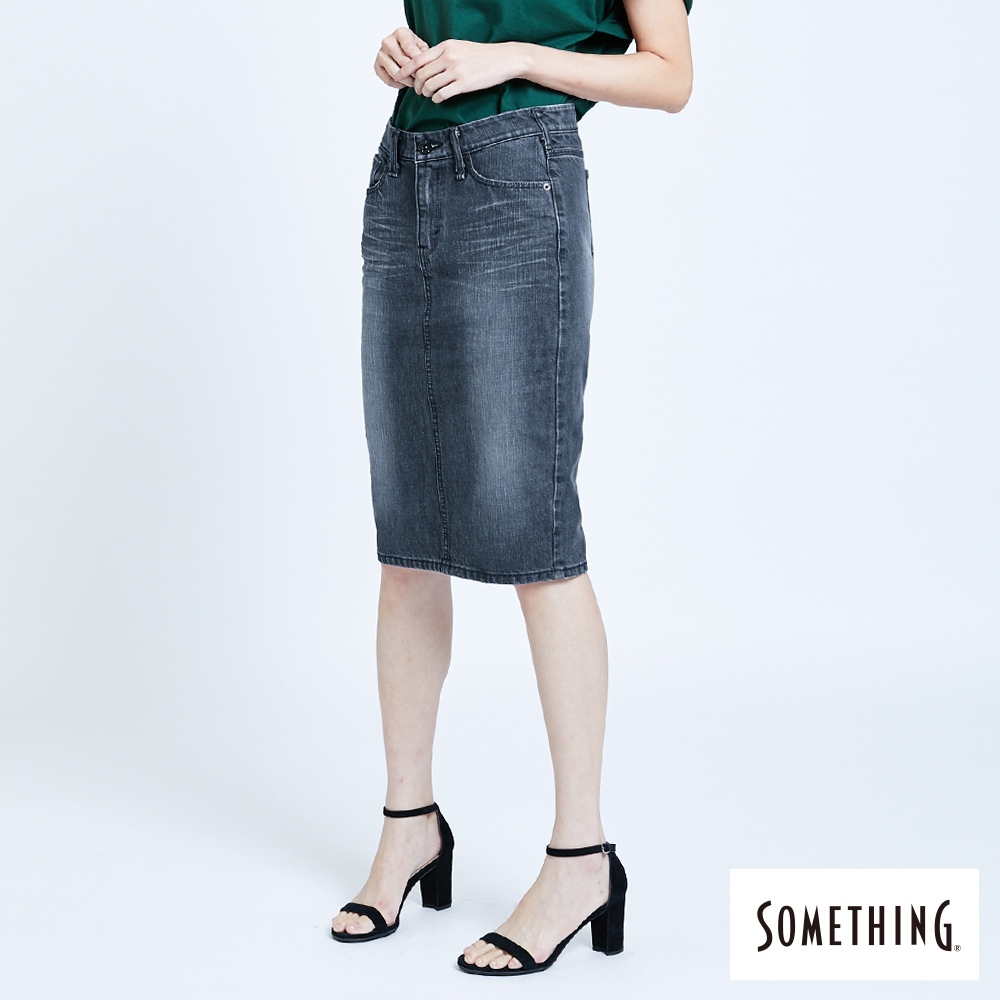 SOMETHING 女款 NEO FIT及膝牛仔半身裙(麻灰色)S|M|LEDWIN 官方旗艦店