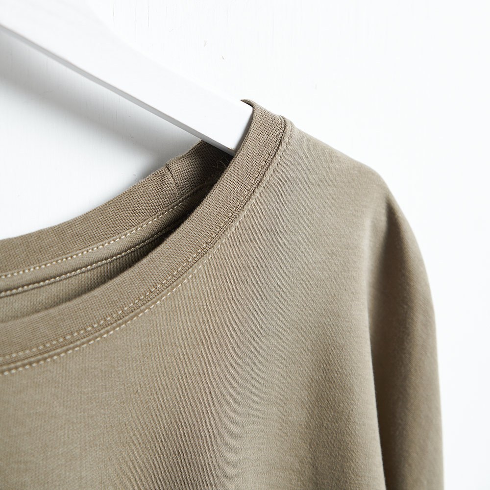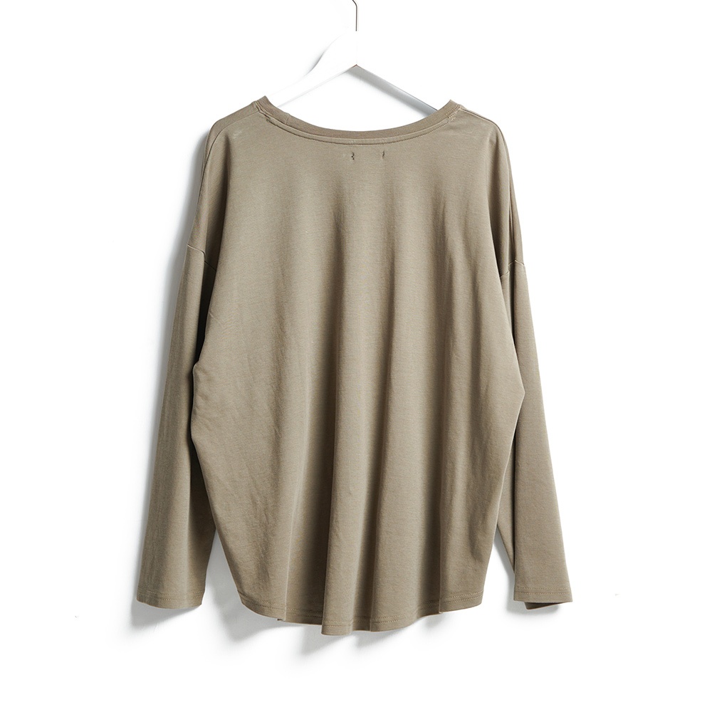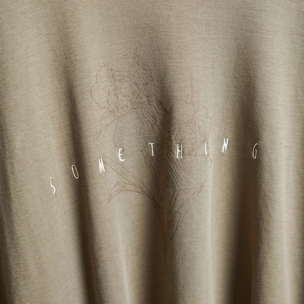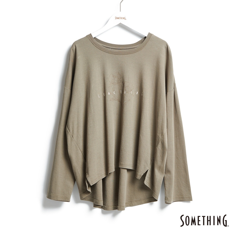 SOMETHING 女款 鳶尾LOGO印花下擺縮口設計長袖T恤(墨綠色) FT-shirtsEDWIN 官方旗艦店