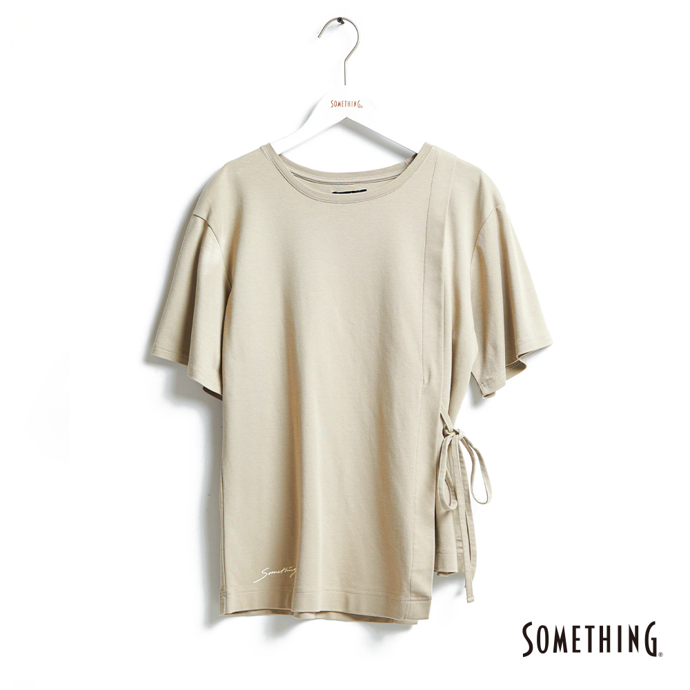 SOMETHING 女款 綁帶設計單衩剪裁短袖T恤(淡綠色)