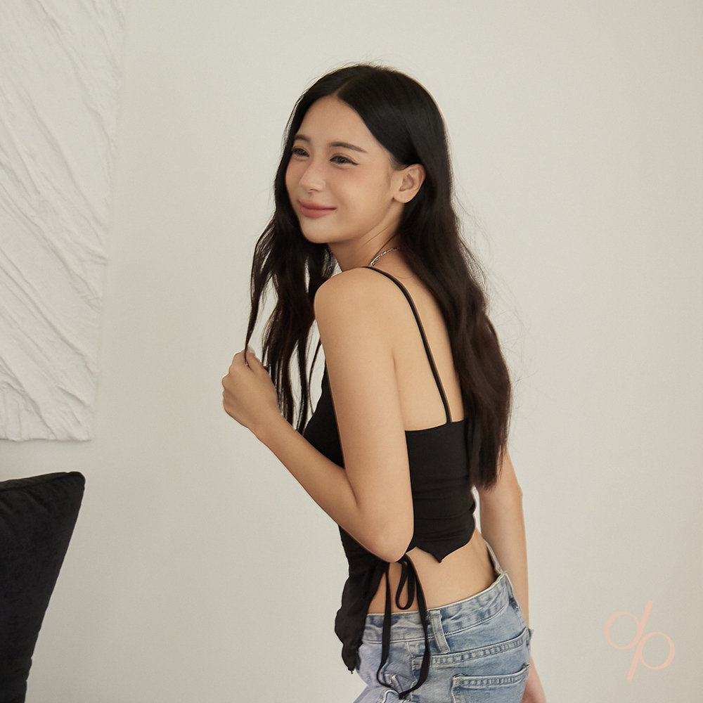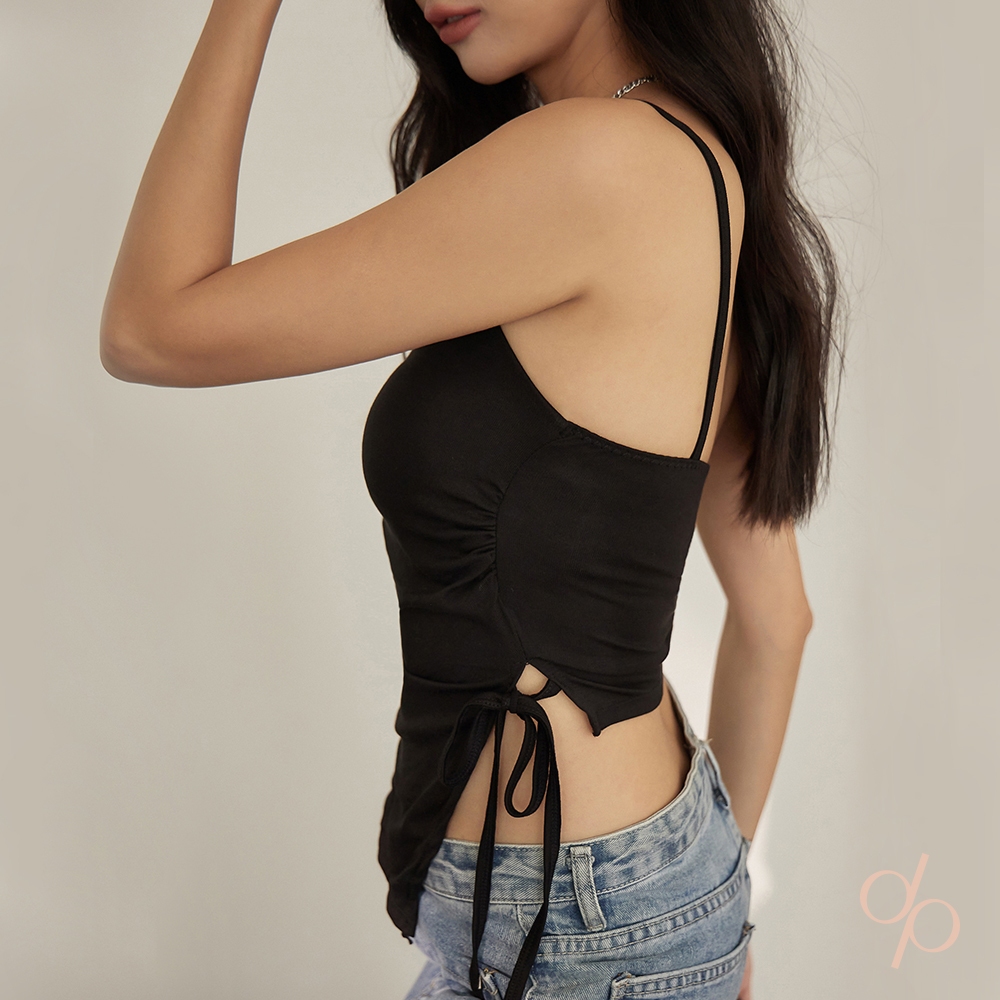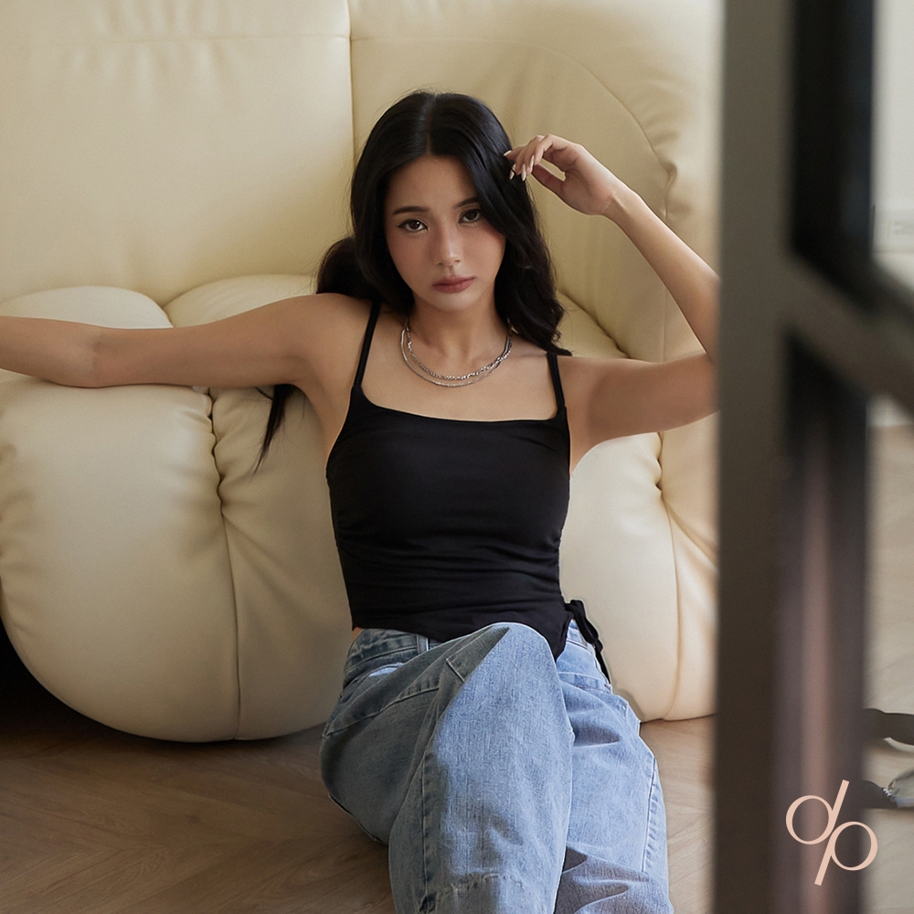 【DEPIC】顯瘦修身側綁帶細肩BRA TOP (黑色)|dp select黑色Tanks & CamisolesDEPIC