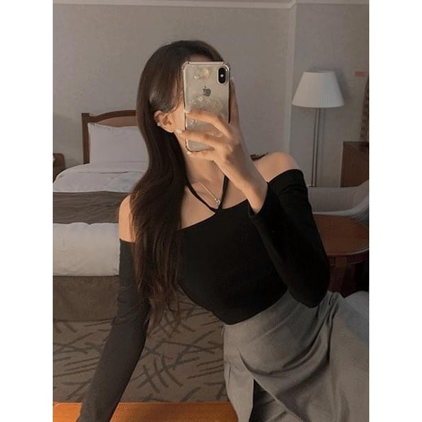 Codibook|韓國 secon’de secon 一字領露肩掛脖長袖上衣[預購]長袖上衣 T恤 女裝象牙白|粉紅色|黑色T-shirtsCodibook 韓國女裝購物平台