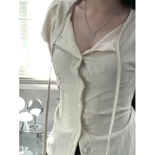 Codibook|韓國 E-PICK 優雅抓褶V領亞麻短袖襯衫[預購]雪紡襯衫 女裝象牙白,Free|米褐色,Free|黑色,FreeShirts & BlousesCodibook 韓國女裝購物平台