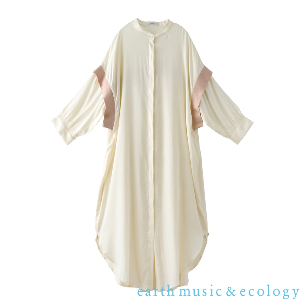 earth music&ecology 拼接羅紋襯衫洋裝(LA43L0H0100)象牙色F|藍色Fearth music&ecology Select Store