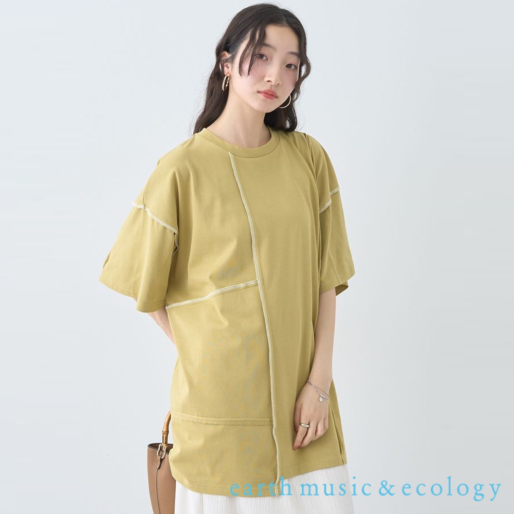 earth music&ecology 不對稱立體縫線設計寬版短袖T恤(01000895100)象牙色F|炭灰色F|淺綠色F|藍色FT-shirtsearth music&ecology Select Store