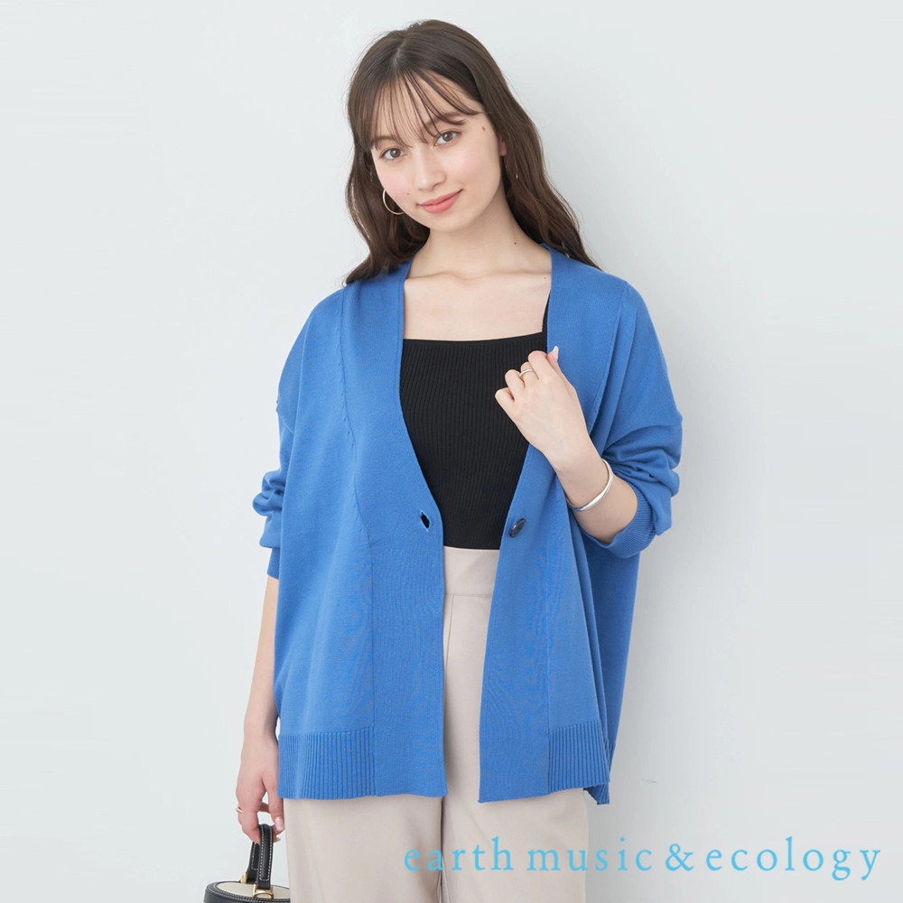 earth music&ecology 抗UV加工V領單扣設計開襟罩衫(1N41L2D0400)本白F|淡混灰色F|粉紅色F|藍色F|橫條紋FCapesearth music&ecology Select Store
