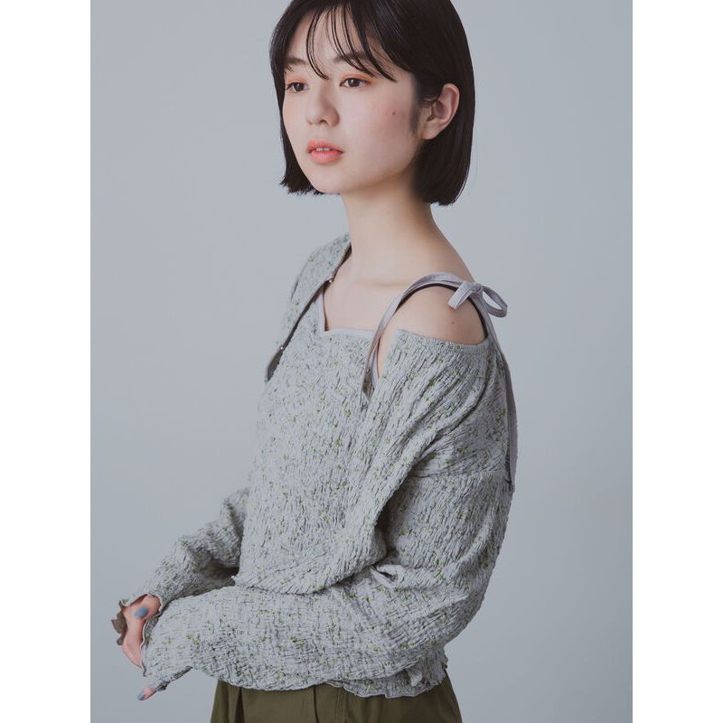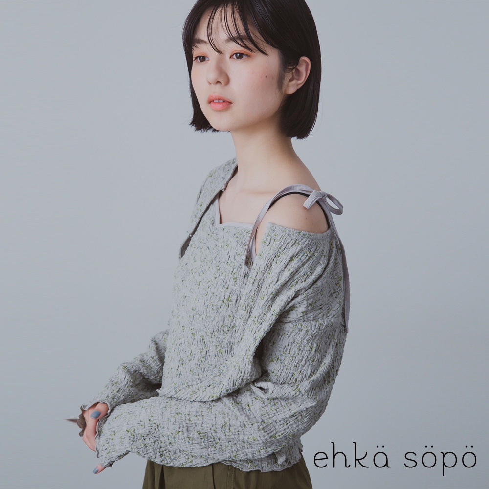 ehka sopo 【SET ITEM】抓皺感碎花圖案捲邊設計背心+罩衫(0F000562310)象牙色F|灰色F|淡青色FT-shirtsearth music&ecology Select Store