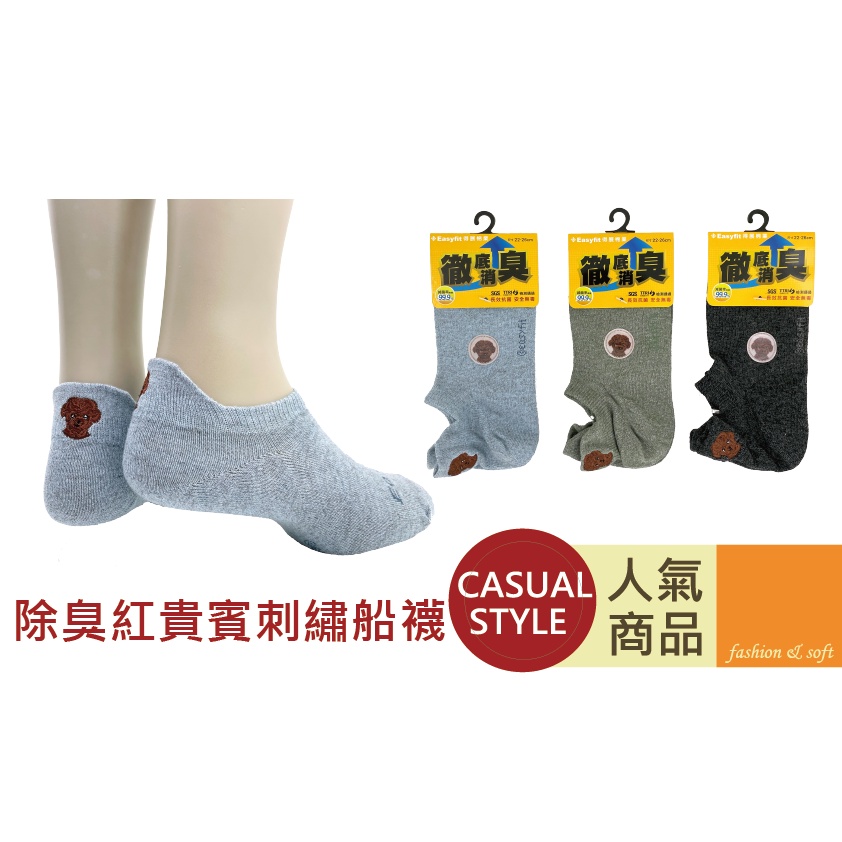 【Easyfit】EF264抗菌除臭紅貴賓(刺繡)船型襪 (尺寸22-26cm)黑色|藍色|綠色SocksEasyfit 得展棉業(統編89773801)