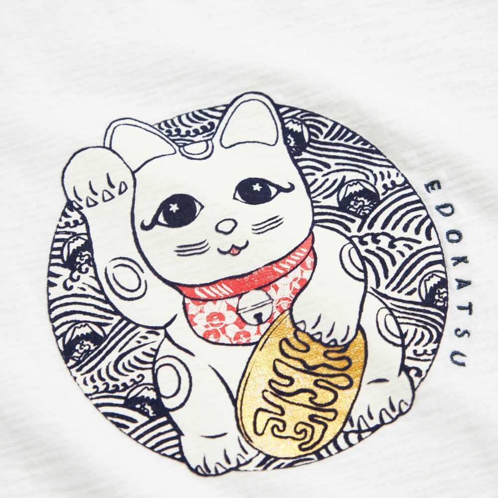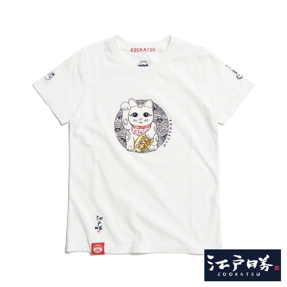江戶勝 女款 招財貓短袖T恤(米白色)S|M|LT-shirtsEDWIN 官方旗艦店