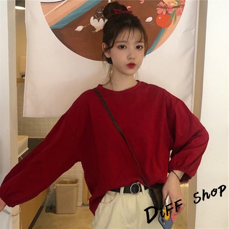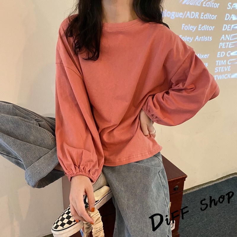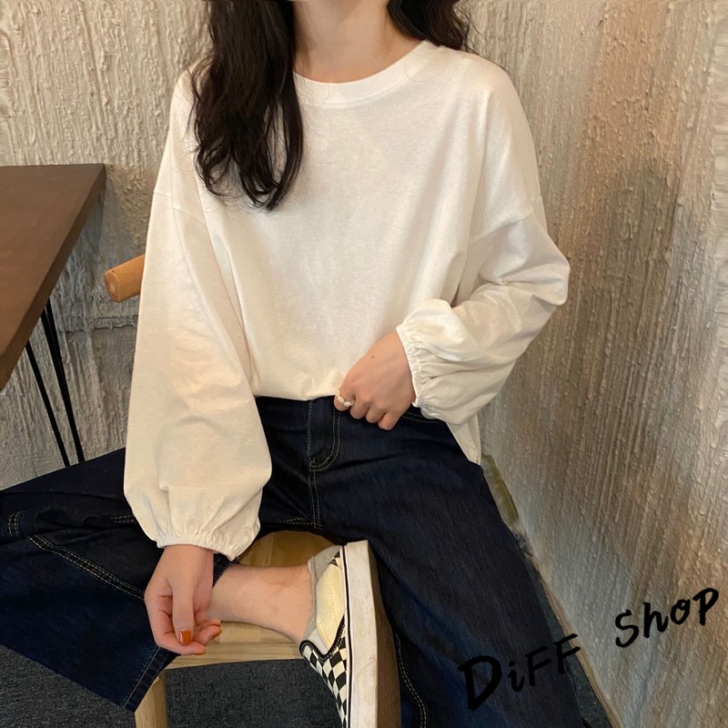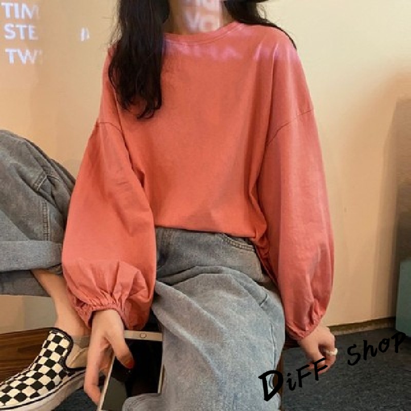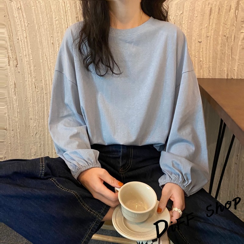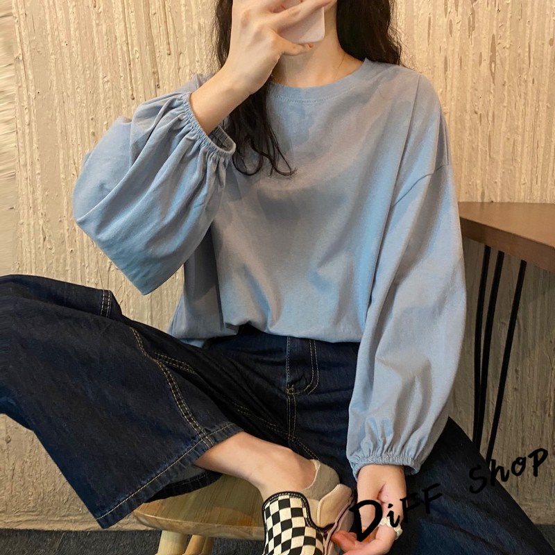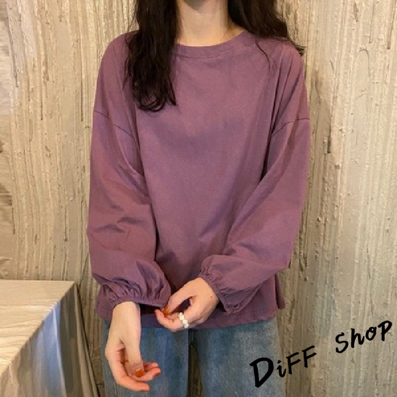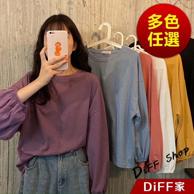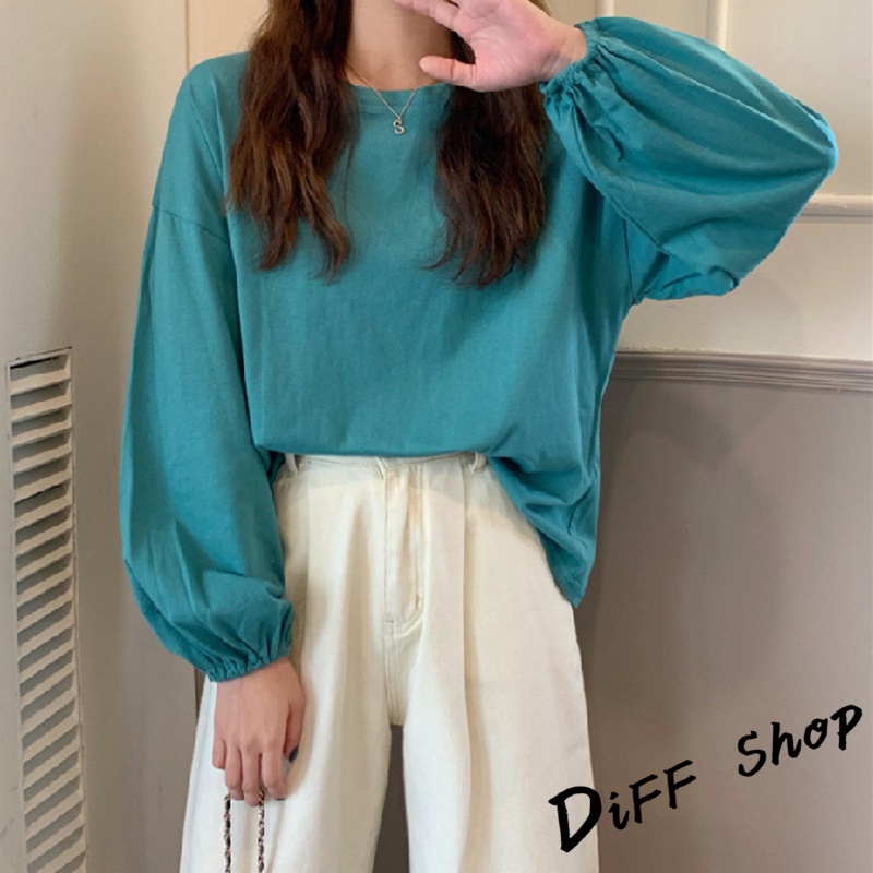 【DIFF】韓版薄款燈籠袖長袖上衣 女裝 衣服 寬鬆上衣 顯瘦上衣 冬裝 長袖t恤 素T 素色【W233】【W233】黑色|【W233】白色|【W233】粉色|【W233】淡藍|【W233】紫色|【W233】黃色|【W233】酒紅|【W233】湖綠色T-shirtsDiFF shop