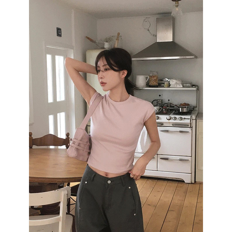 Codibook|韓國 frenchaube 夏日羅紋圓領修身半截短版T恤[預購]短袖上衣 T恤 女裝粉紅色,Free|象牙白,Free|深藍色,FreeT-shirtsCodibook 韓國女裝購物平台