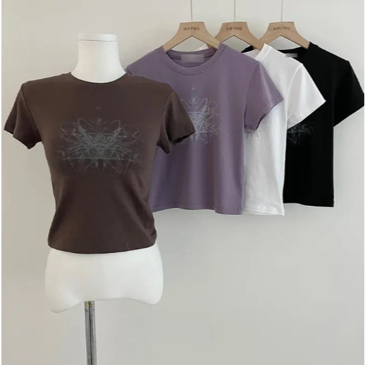 Codibook|韓國 E-PICK 圓領緊身骷髏短袖T恤[預購]短袖上衣 T恤 女裝黑色,Free|紫色,Free|咖啡色,Free|白色,FreeT-shirtsCodibook 韓國女裝購物平台