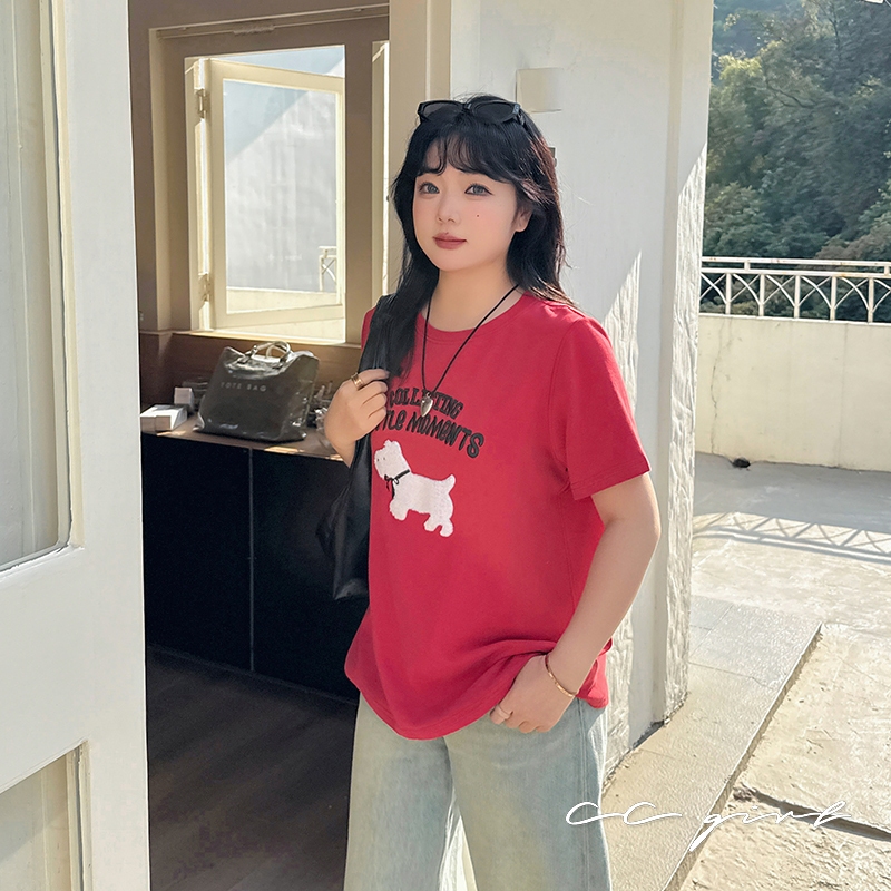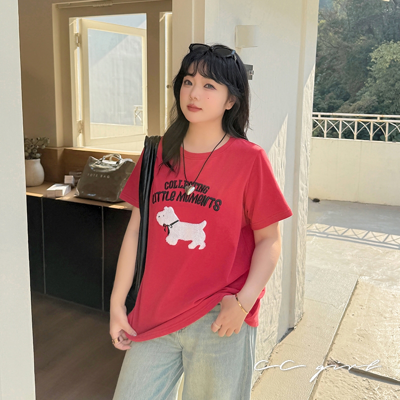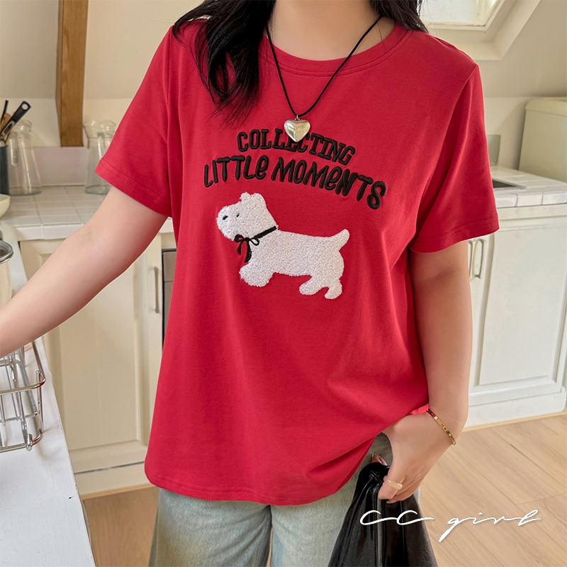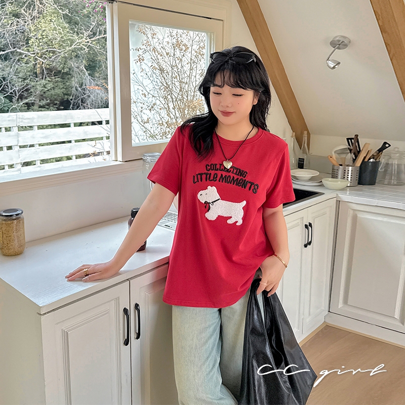 CCGIRL中大尺碼 旺旺!毛巾繡小狗♡刺繡字母圓領短袖上衣-共2色-XL~5L《20786》大尺碼女裝中大尺碼上衣毛巾繡小狗-童趣紅,XL(建議XL和2L適穿)|毛巾繡小狗-童趣紅,2L(建議2L和3L適穿)|毛巾繡小狗-童趣紅,3L(建議3L和4L適穿)|毛巾繡小狗-童趣紅,4L(建議4L和5L適穿)|毛巾繡小狗-經典黑,XL(建議XL和2L適穿)|毛巾繡小狗-經典黑,2L(建議2L和3L適穿)|毛巾繡小狗-經典黑,3L(建議3L和4L適穿)|毛巾繡小狗-經典黑,4L(建議4L和5L適穿)T-shirtsCCGIRL中大尺碼女裝