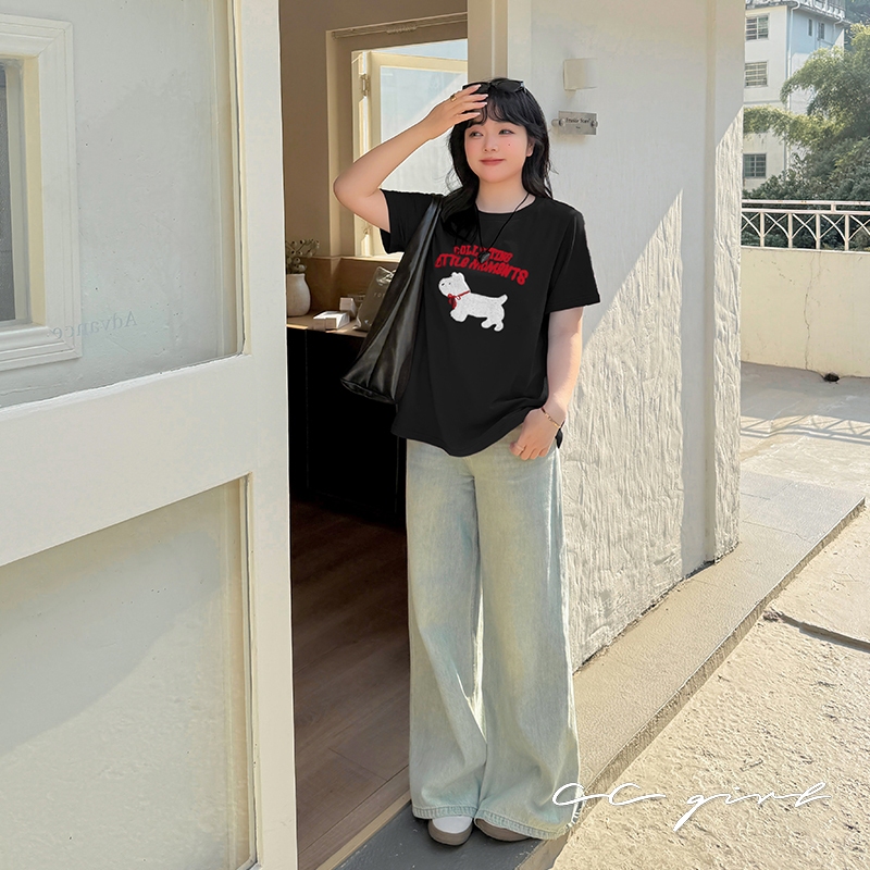 CCGIRL中大尺碼 旺旺!毛巾繡小狗♡刺繡字母圓領短袖上衣-共2色-XL~5L《20786》大尺碼女裝中大尺碼上衣