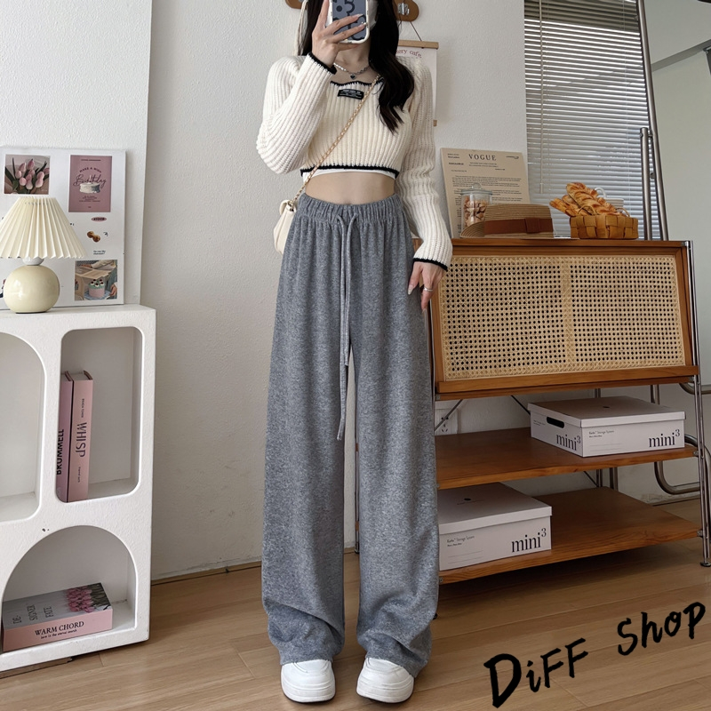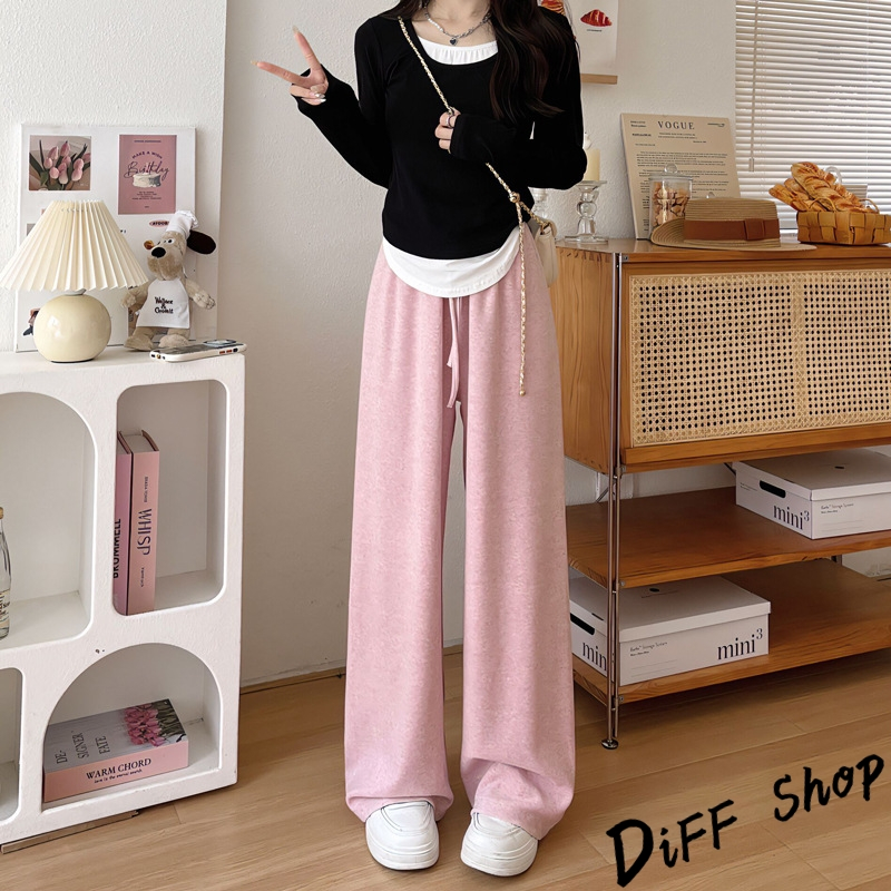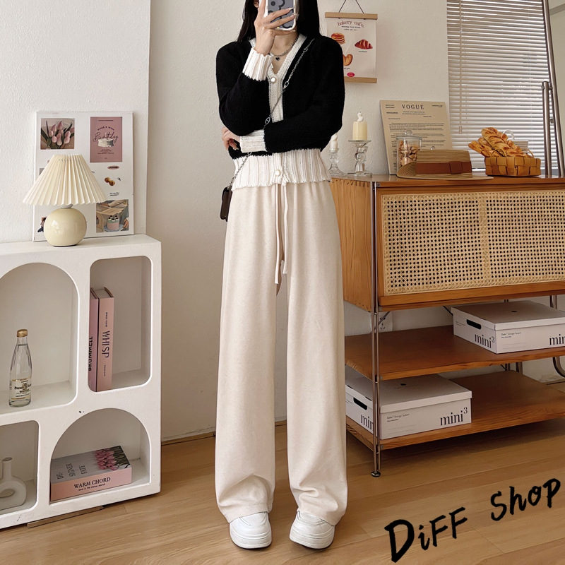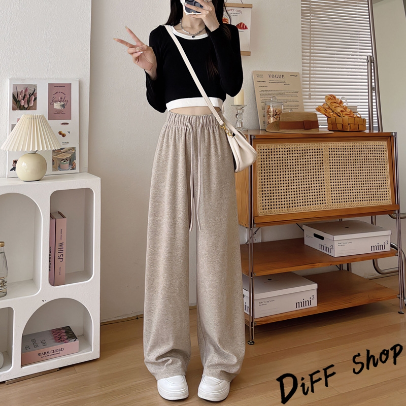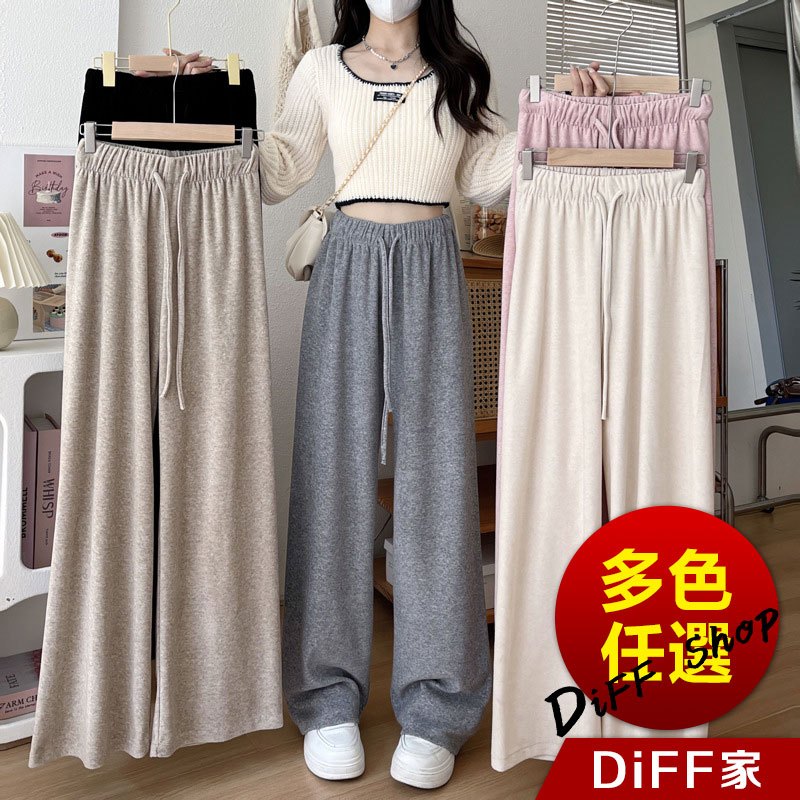 【DIFF】韓版溫柔風休閒高腰拖地褲 寬褲 長褲 休閒褲 女裝 高腰褲 拖地褲 直筒褲 黑褲【P297】【P297】黑色|【P297】杏色|【P297】深灰色|【P297】淺灰色PantsDiFF shop