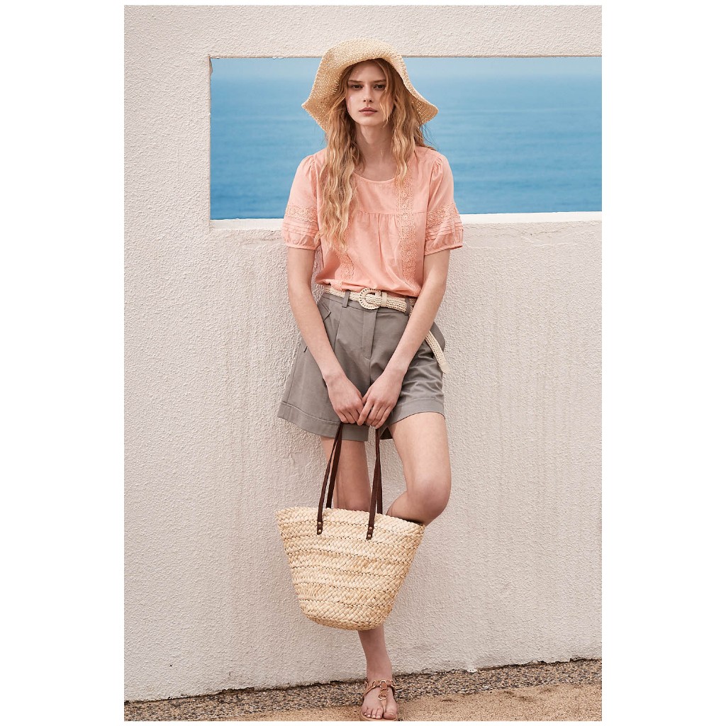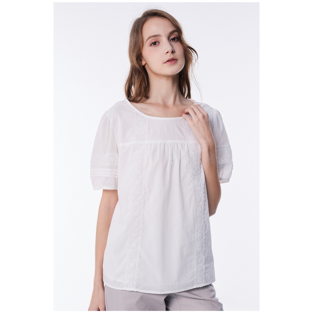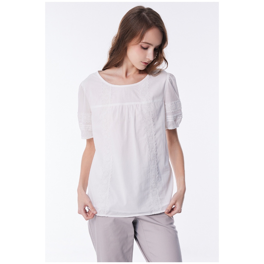 【en-suey 銀穗】薄棉蕾絲微拋短袖上衣 – 橘/白 5213-1105橘,M|橘,L|橘,XL|白,M|白,L|白,XLOthersen-suey 銀穗