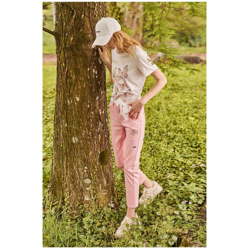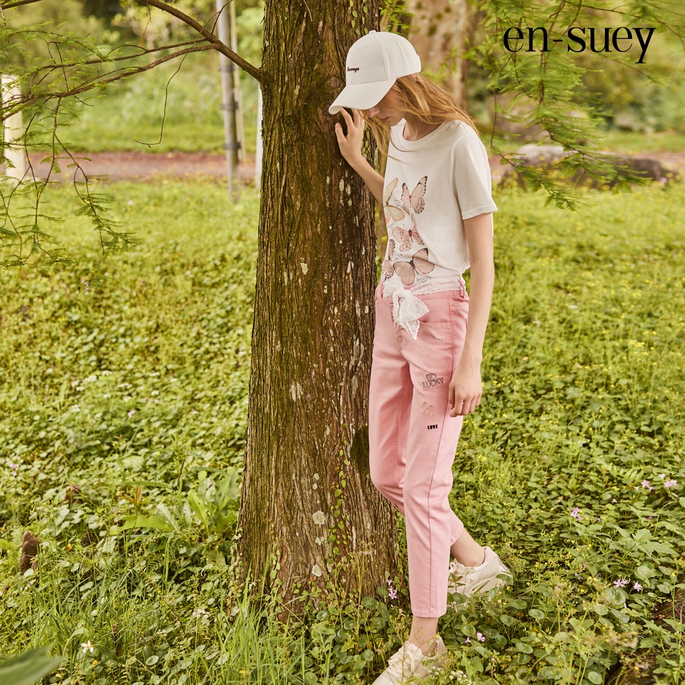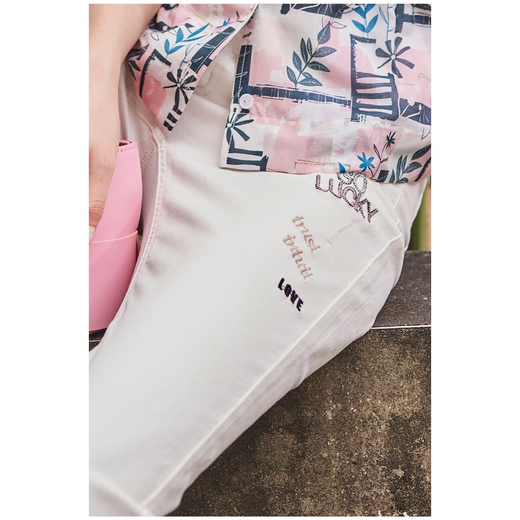 【en-suey 銀穗】字母繡花直筒八分長褲 – 粉/白/綠 5213-1520