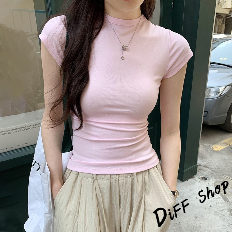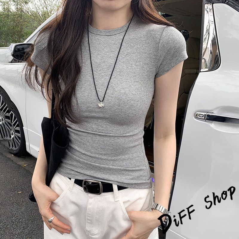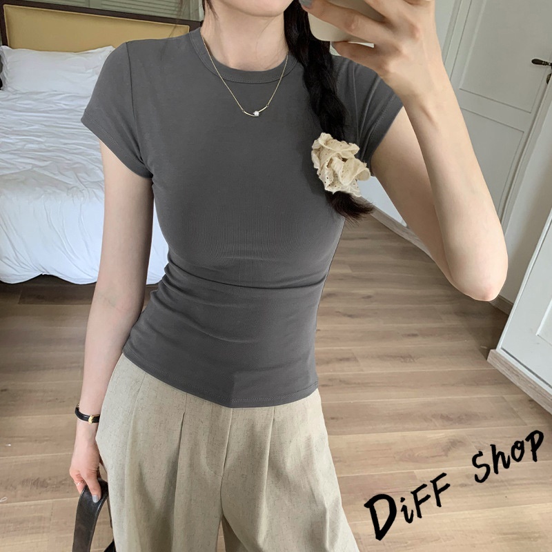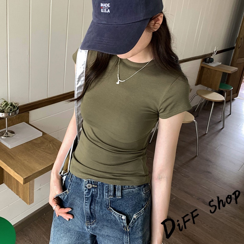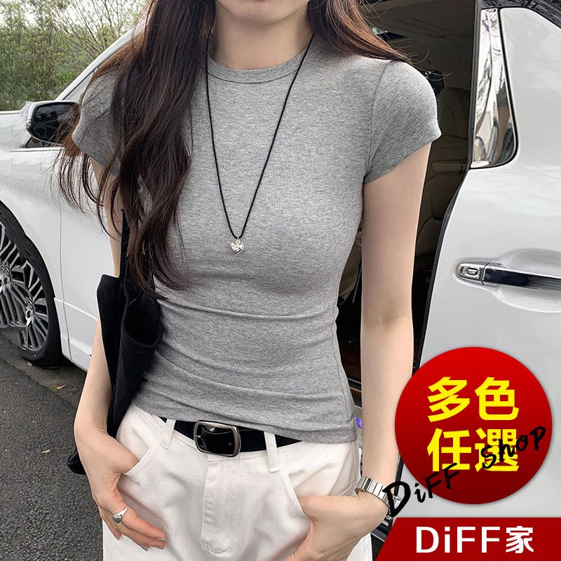 【DIFF】韓版簡約彈性緊身顯瘦短袖上衣 顯瘦上衣 衣服 夏天女裝 短板上衣 短版t恤 女裝 短袖t恤女【T639】【T639】軍綠色|【T639】白色|【T639】淺灰色|【T639】深灰色|【T639】黑色|【T639】紫色T-shirtsDiFF shop
