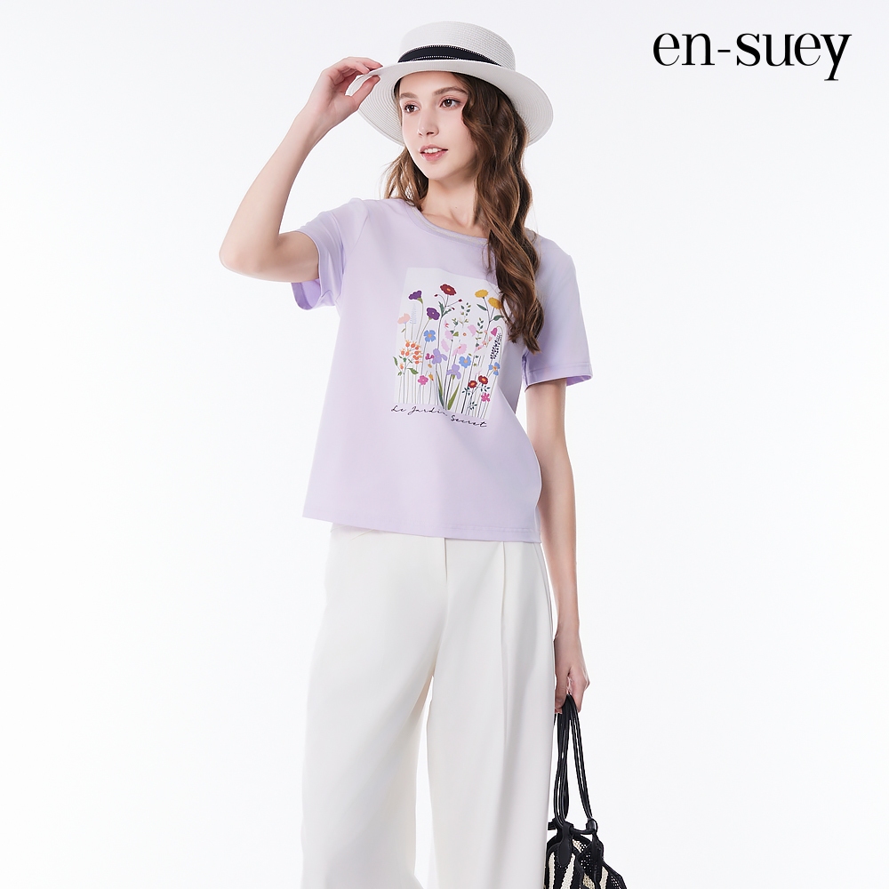 【en-suey 銀穗】網路獨家款★涼感可愛花卉圖案短袖上衣 – 淺紫/黃 5213-7202淺紫,M|淺紫,L|淺紫,XL|黃,M|黃,L|黃,XLT-shirtsen-suey 銀穗