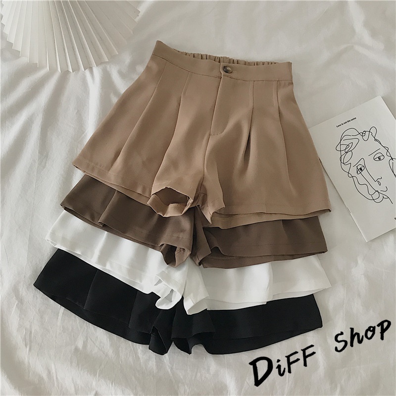 【DIFF】韓版寬鬆薄款小個子高腰闊腿短褲 A字褲 西裝褲 女裝 短褲 褲子 褲裙 短褲【P185】【P185】咖啡色|【P185】杏色|【P185】白色|【P185】黑色ShortsDiFF shop