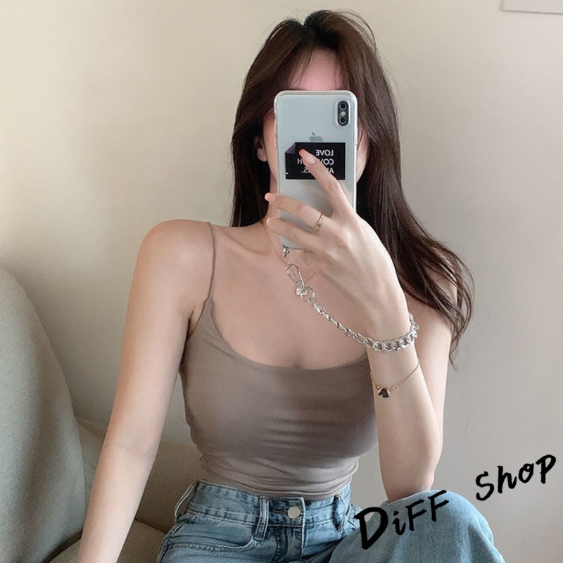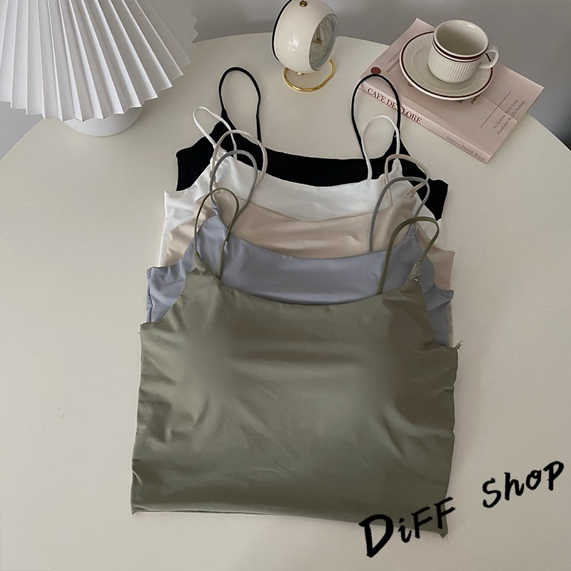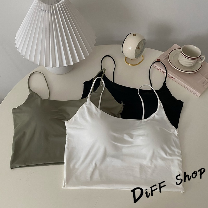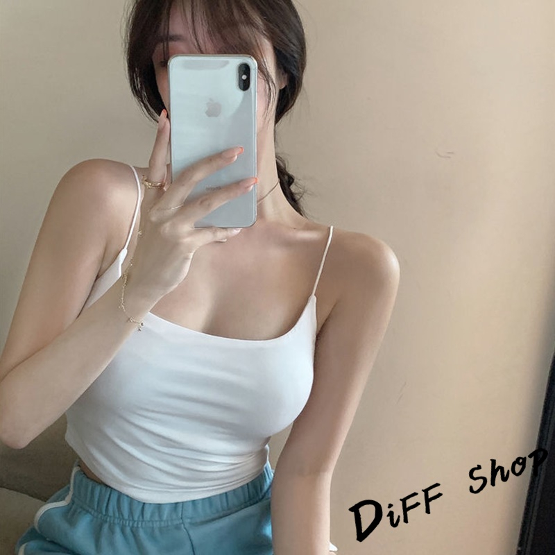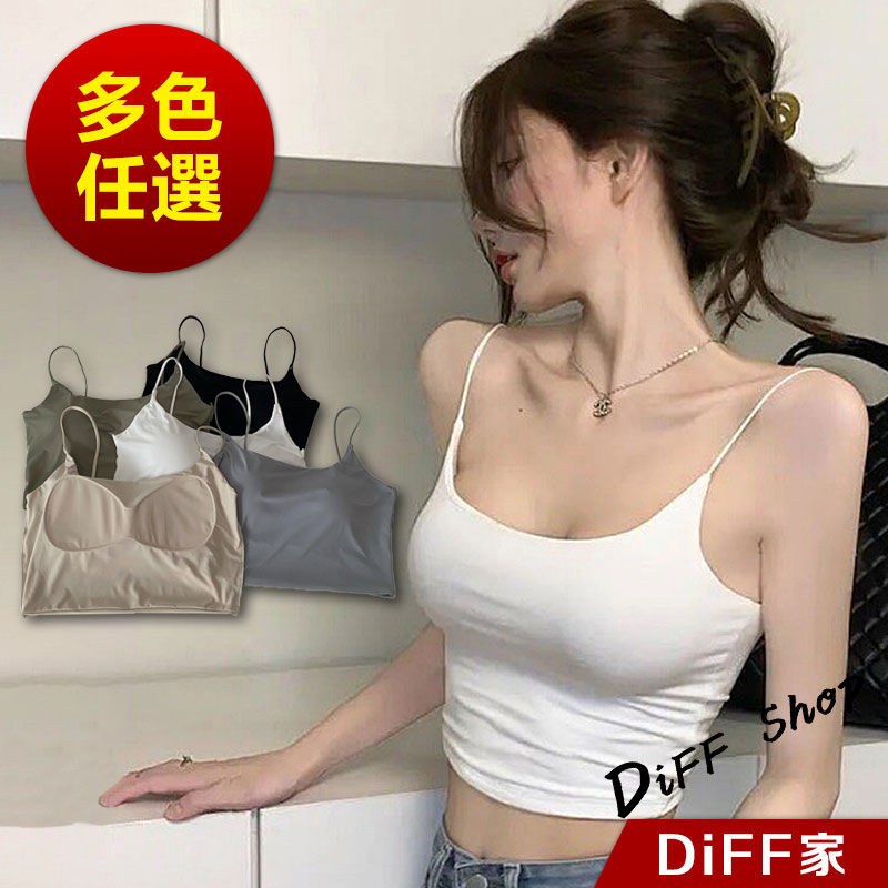 【DIFF】韓版冰絲細肩美背吊帶背心 帶胸墊免穿內衣 小可愛 女裝 衣服 短版上衣 運動背心 短版背心 【V279】【V279】黑色|【V279】白色|【V279】杏色|【V279】霧藍|【V279】軍綠Tanks & CamisolesDiFF shop