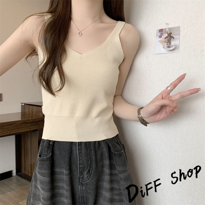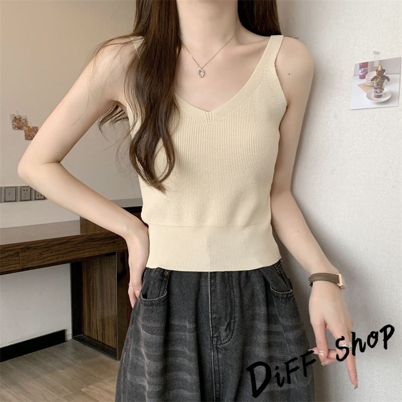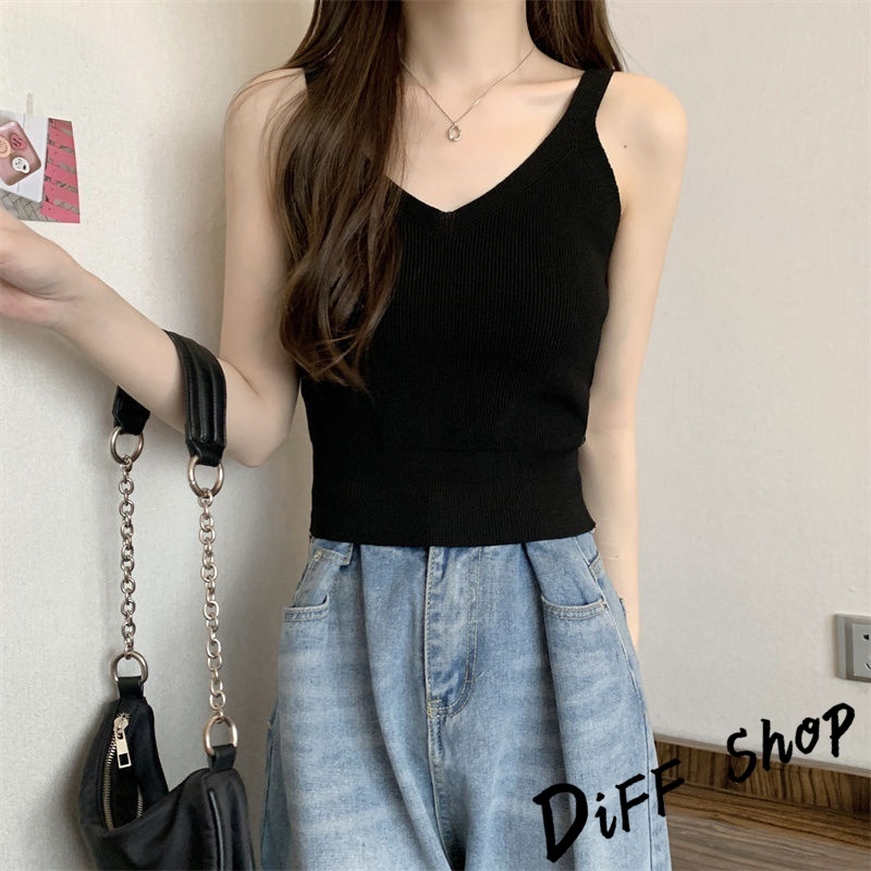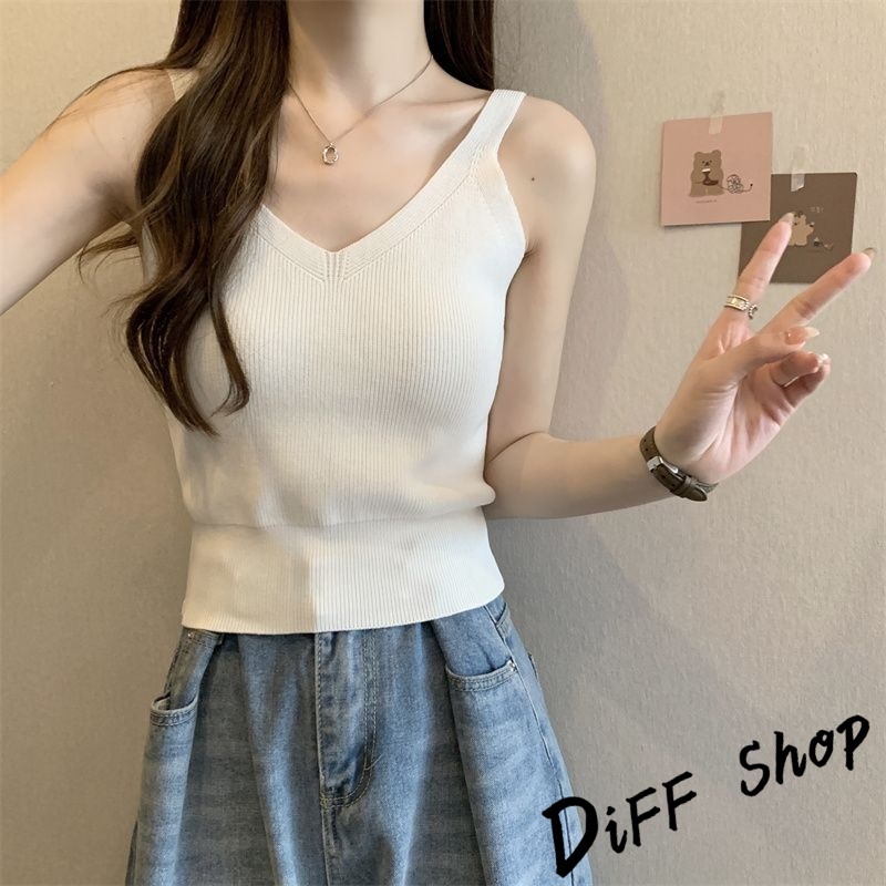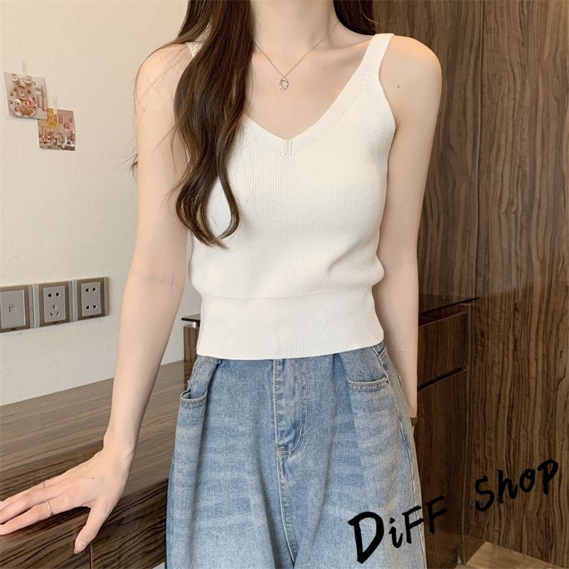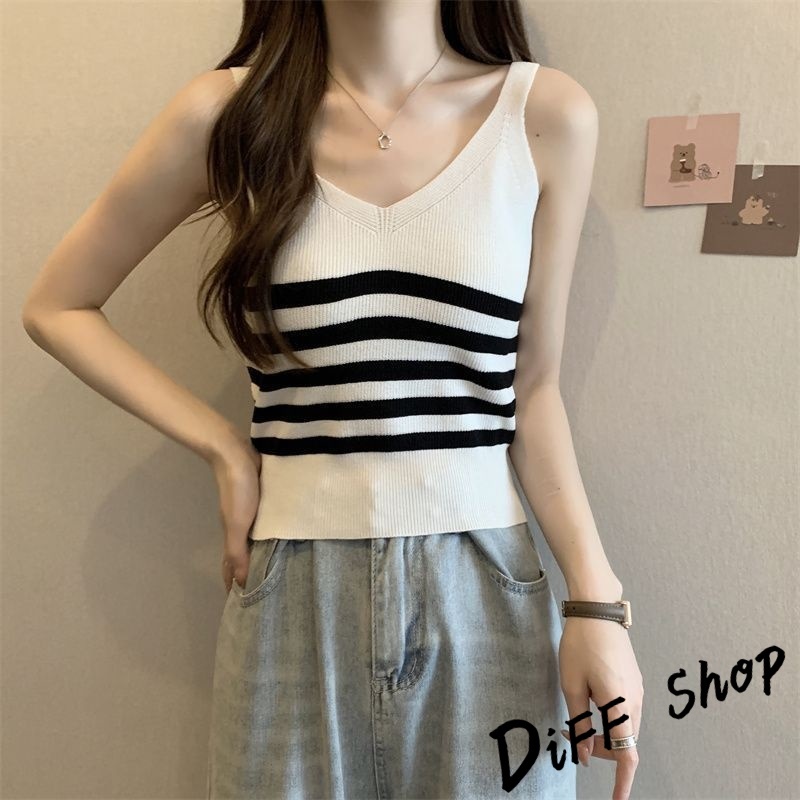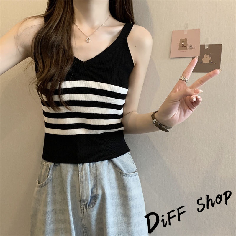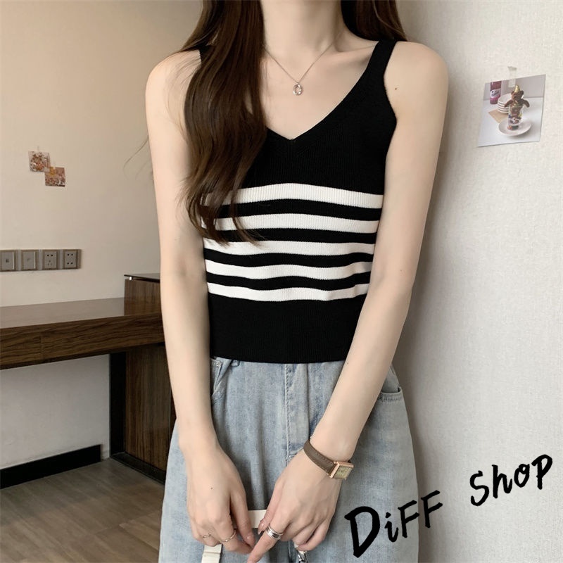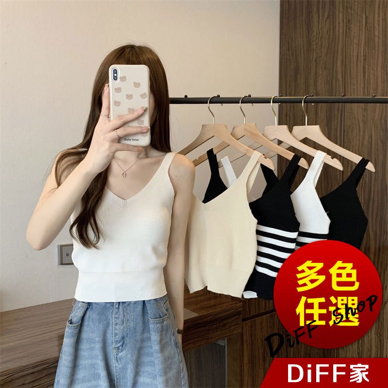 【DIFF】韓版氣質V領小心機針織背心 上衣 小可愛 女裝 衣服 短版上衣 短板上衣【V330】【V330】黑色|【V330】白色|【V330】杏色|【V330】白條|【V330】黑條Tanks & CamisolesDiFF shop