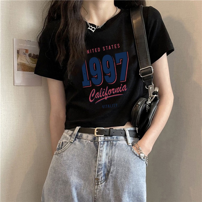 日常剛需高質感! 短板上衣 短袖 小可愛 美式復古 小辣上衣 短版 t恤 正肩上衣 白色衣服 夏日穿搭 ins 風衣服