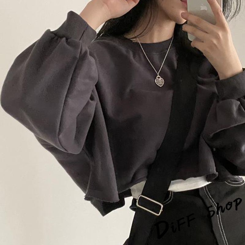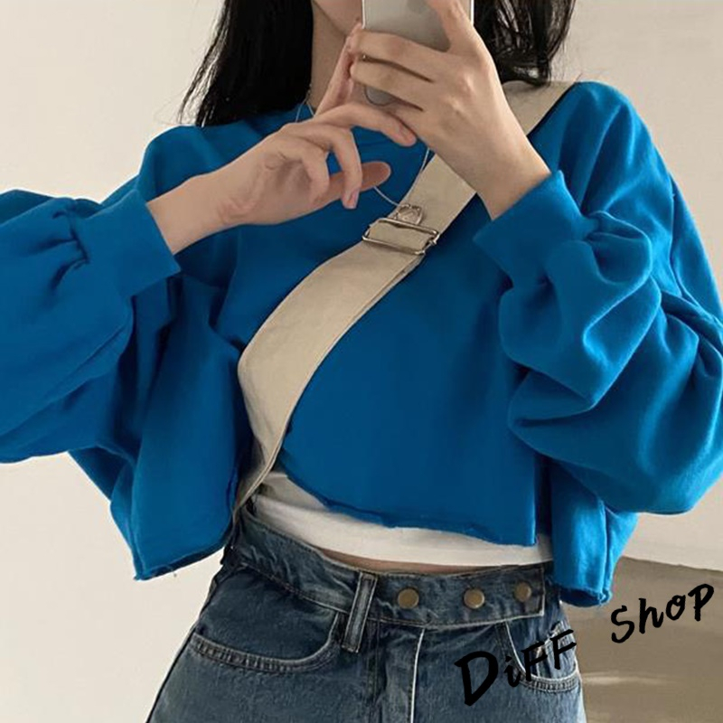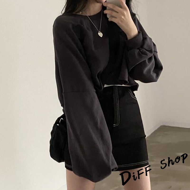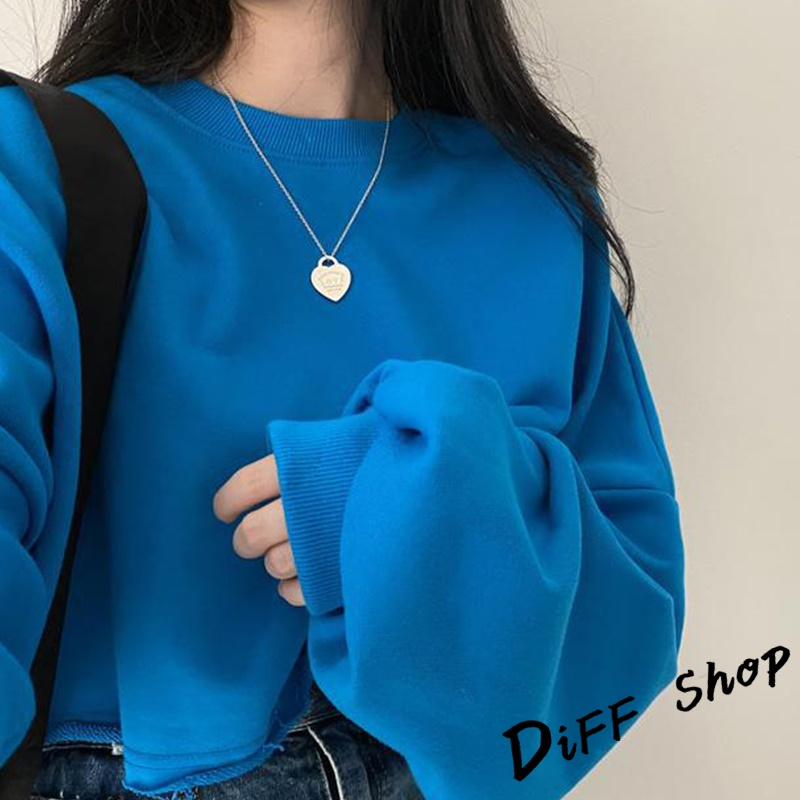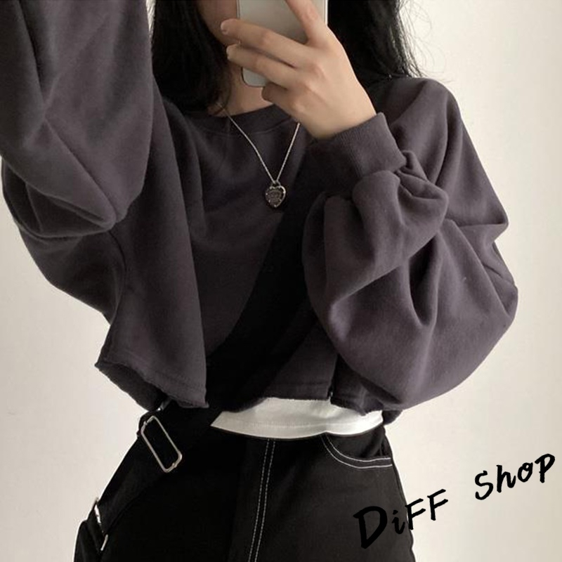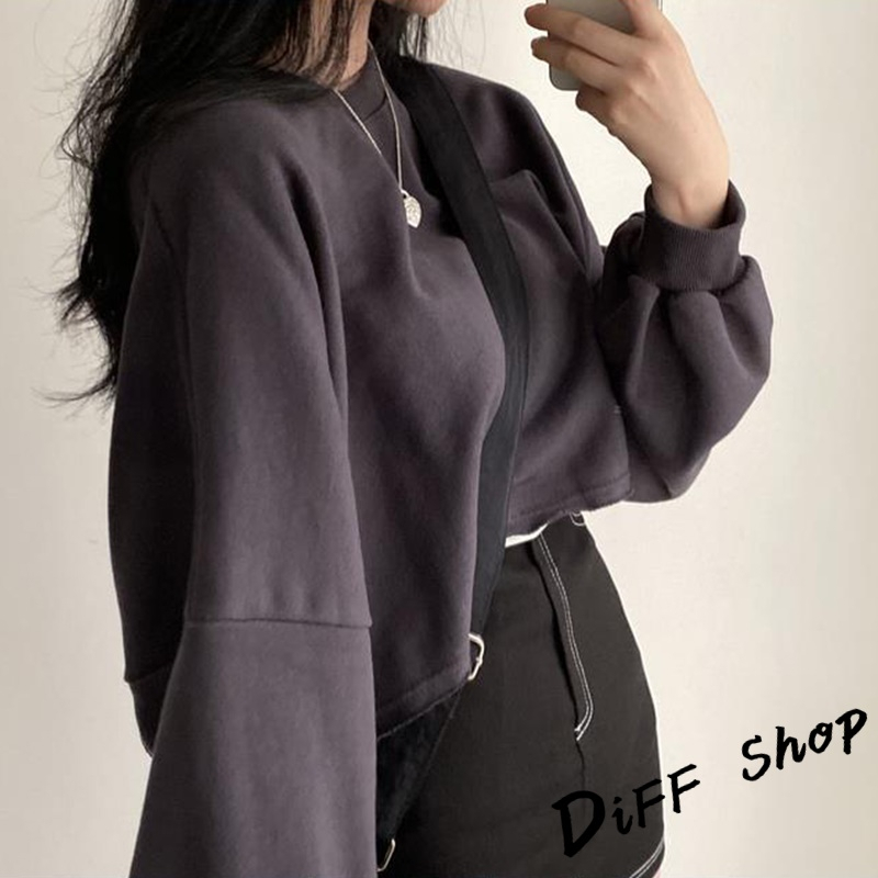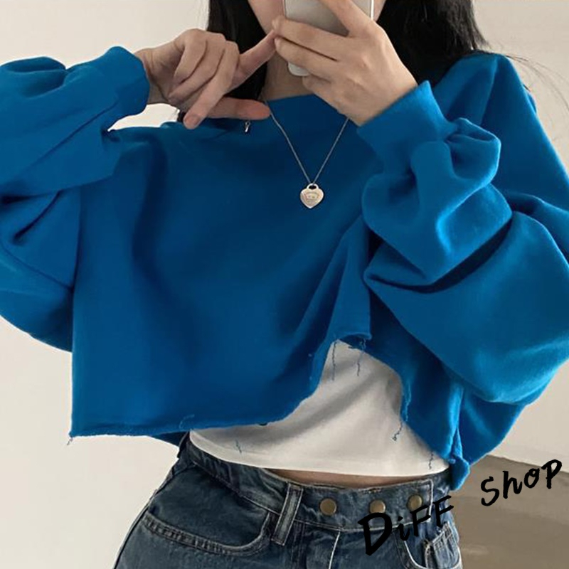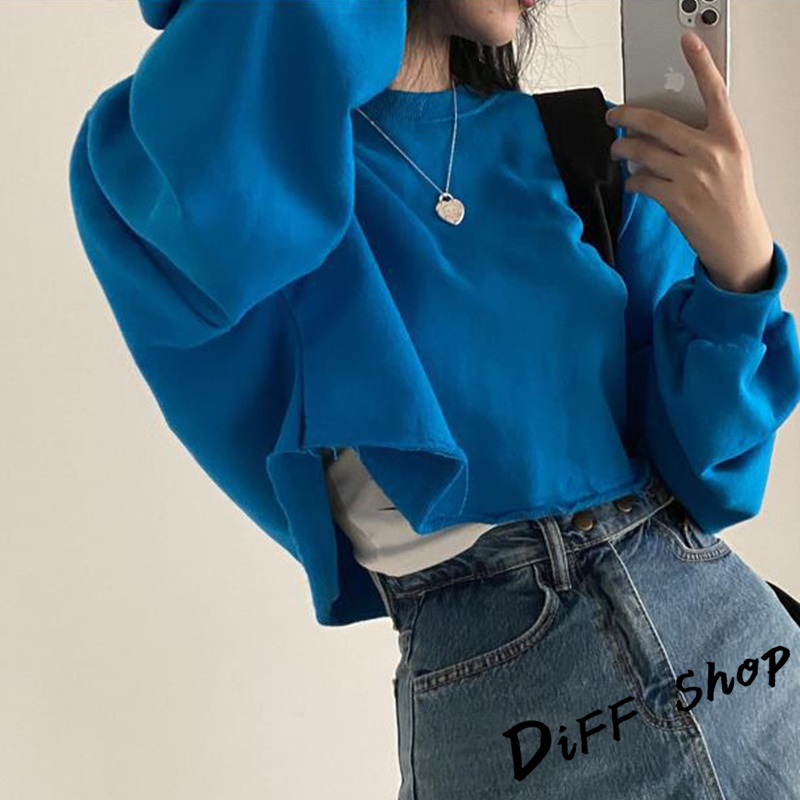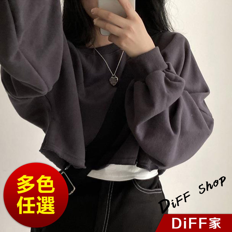 【DIFF】韓版寬鬆圓領素色長袖短版上衣 長袖上衣 女裝 衣服 寬鬆上衣 顯瘦上衣 長袖t恤 素T【W383】【W383】寶藍|【W383】深灰SweatshirtsDiFF shop