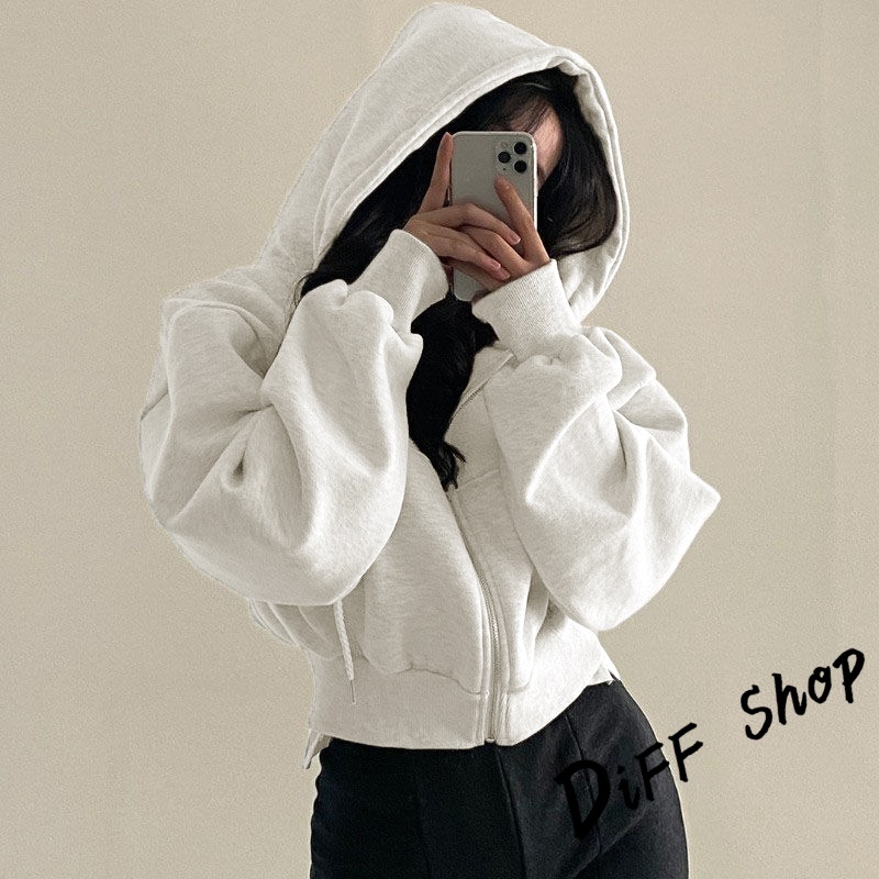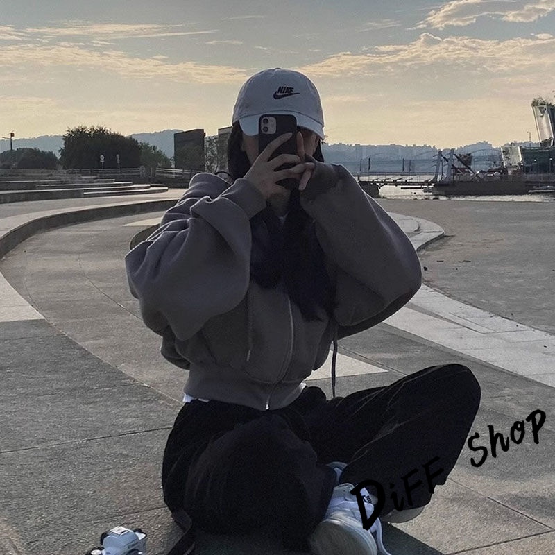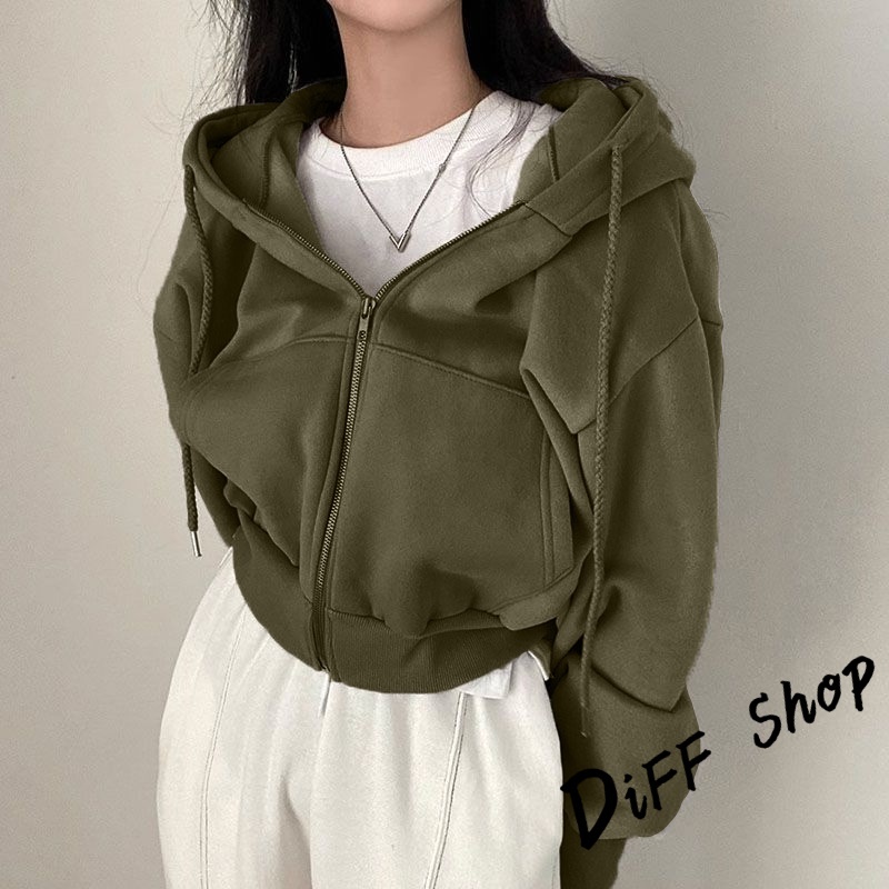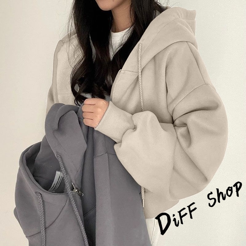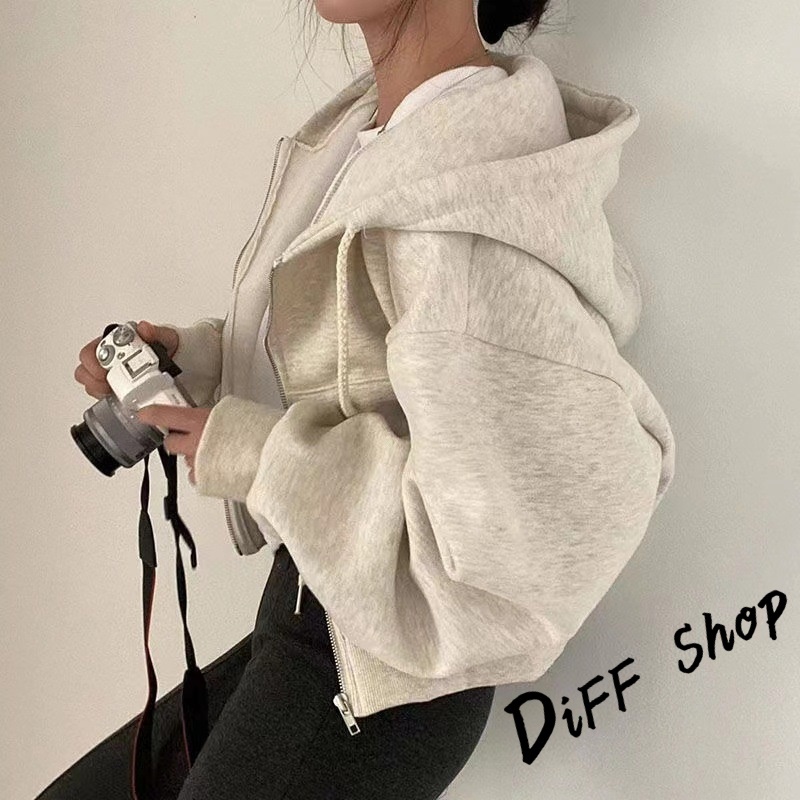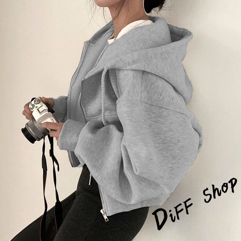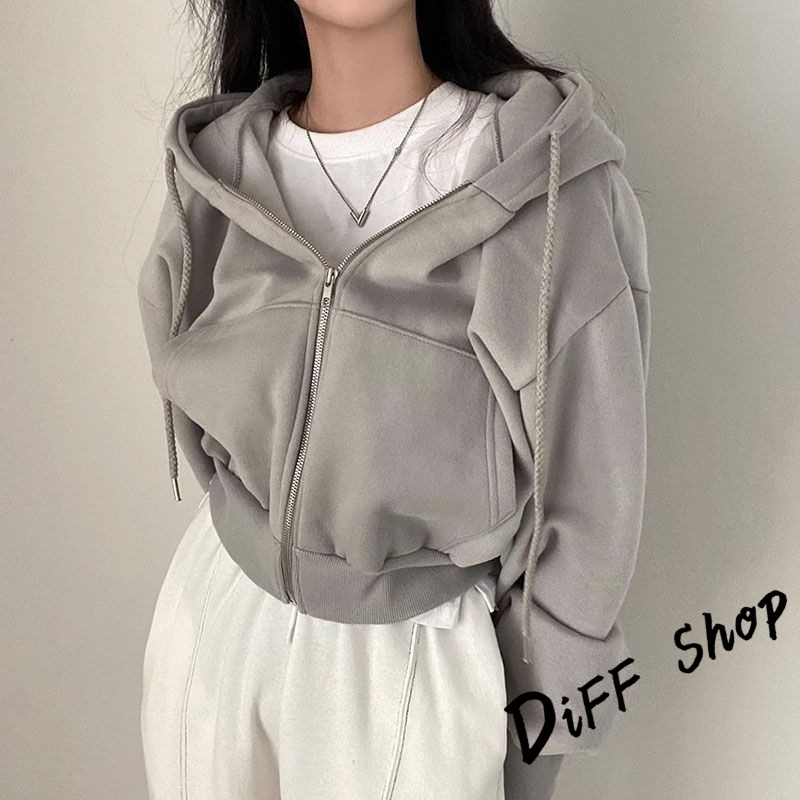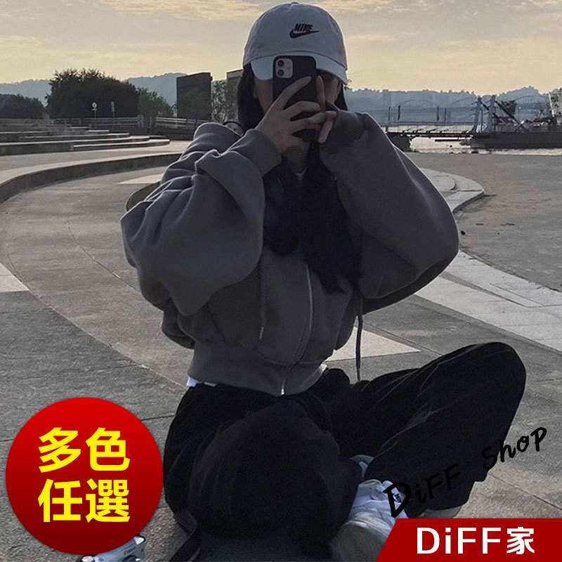 【DIFF】韓版簡約寬鬆內刷毛運動外套 短版外套 上衣 女裝 衣服 長袖上衣 保暖外套 連帽外套 冬天外套【J269】【J269】淺灰|【J269】黑色|【J269】藏青|【J269】杏色|【J269】軍綠|【J269】白色JacketsDiFF shop