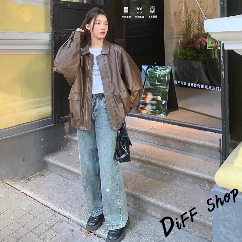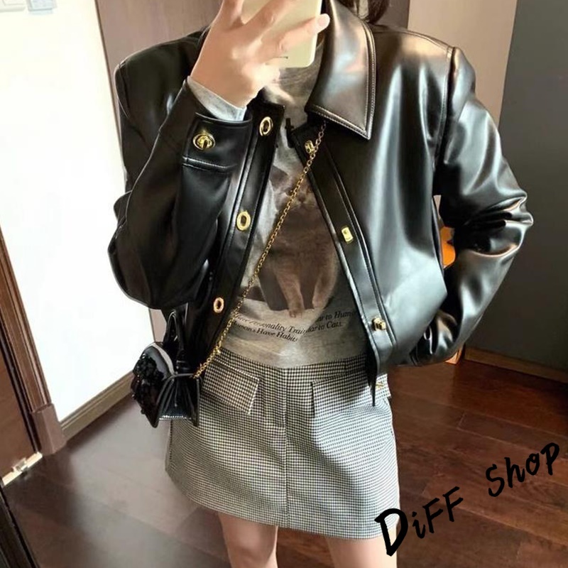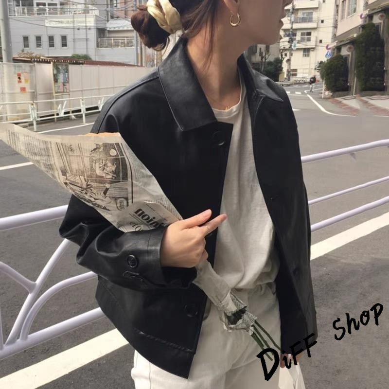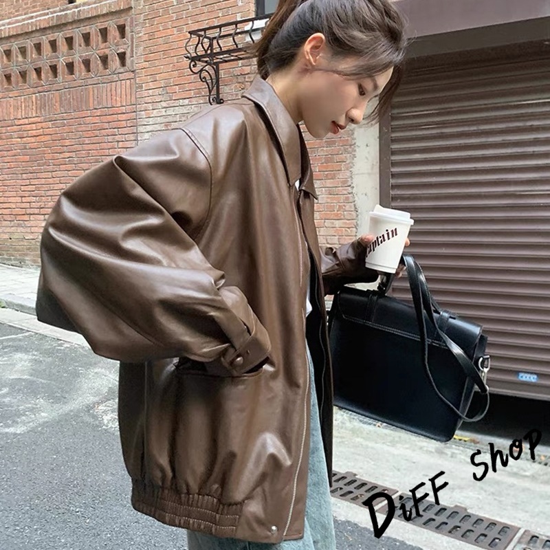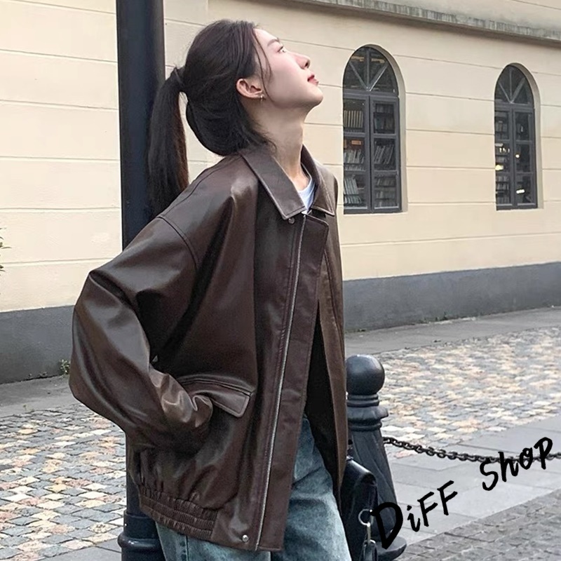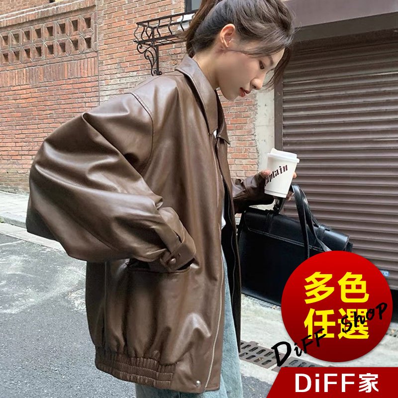 【DIFF】韓版復古棕色薄皮衣 皮夾克 機車外套 皮外套 女裝 衣服 上衣 保暖外套 保暖上衣 冬天外套【J382】【J382】黑色|【J382】咖色JacketsDiFF shop