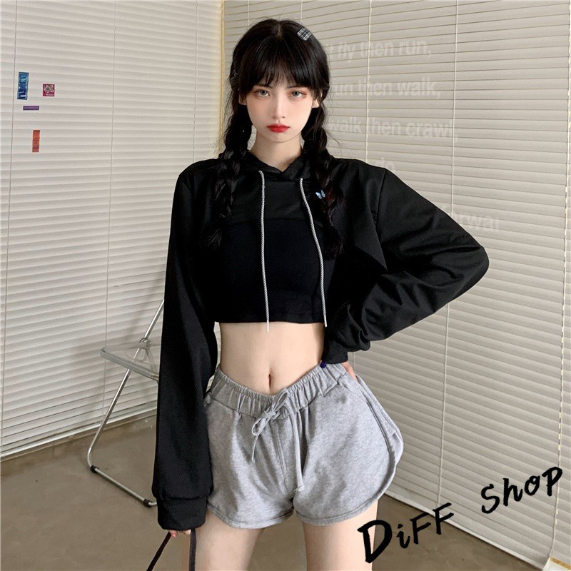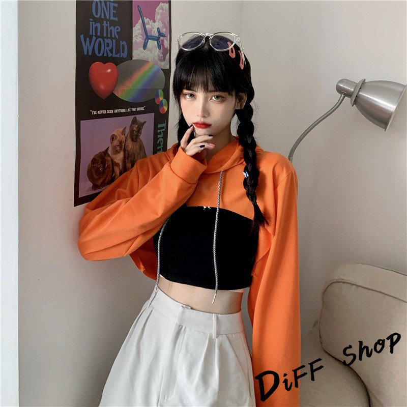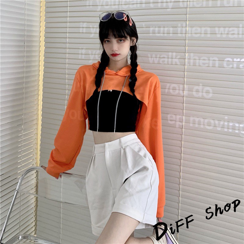 【DIFF】韓版寬鬆薄款連帽短版上衣 長袖上衣 女裝 衣服 寬鬆上衣 顯瘦上衣 素色 長袖t恤 帽t【V32】S124【S124】橘色上衣|【V32】白|【V32】黑|【V32】淺灰|【S124】深藍上衣|【S124】黑色上衣|【S124】灰色上衣|【S124】白色上衣HoodiesDiFF shop