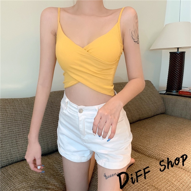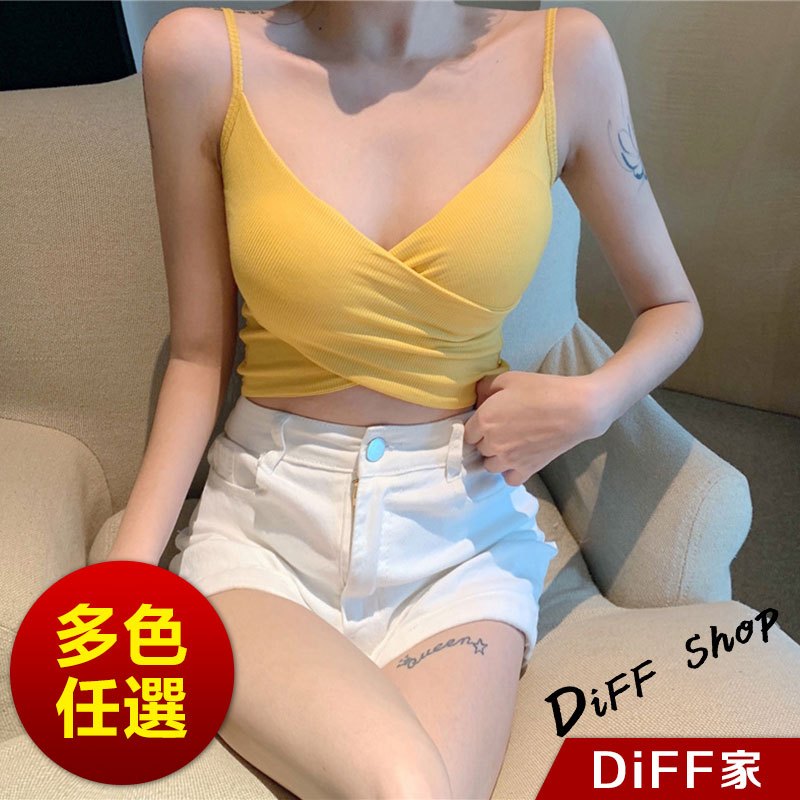 【DIFF】韓版小心機交叉美背運動背心 帶胸墊免穿內衣 上衣 小可愛 女裝 衣服 短版上衣 短板上衣【V129】【V129】白色|【V129】黑色|【V129】灰色|【V129】酒紅|【V129】淺黃|【V129】卡其Tanks & CamisolesDiFF shop