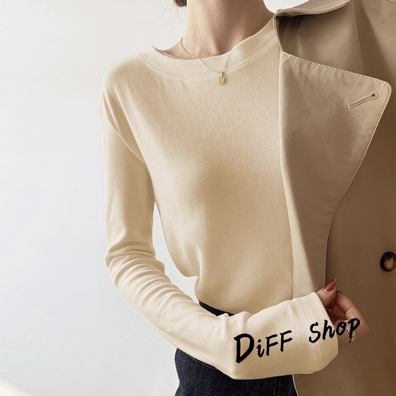 【DIFF】韓版薄內刷毛圓領打底保暖長袖上衣 女裝 衣服 寬鬆上衣 顯瘦上衣 長袖t恤 冬裝【W337】【W337】黑色|【W337】深灰|【W337】白色|【W337】卡其Thermal InnerwearDiFF shop