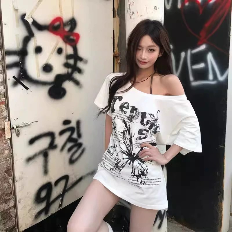 佔據人群C位! 斜肩上衣 美式慵懶感 一字肩上衣 蝴蝶印花 韓系chic 露鎖骨上衣 t恤 女 韓版 露肩t恤 顯瘦穿搭白色,S|白色,M|白色,L|白色【優質版】,S|白色【優質版】,M|白色【優質版】,LT-shirtsCHAOO 台北原創服飾品牌