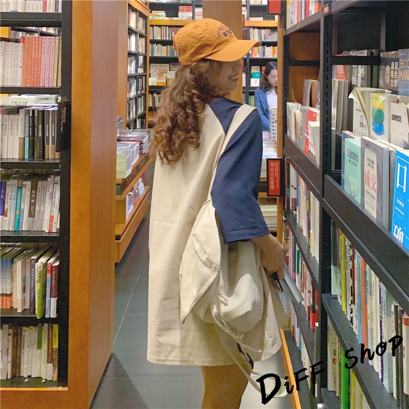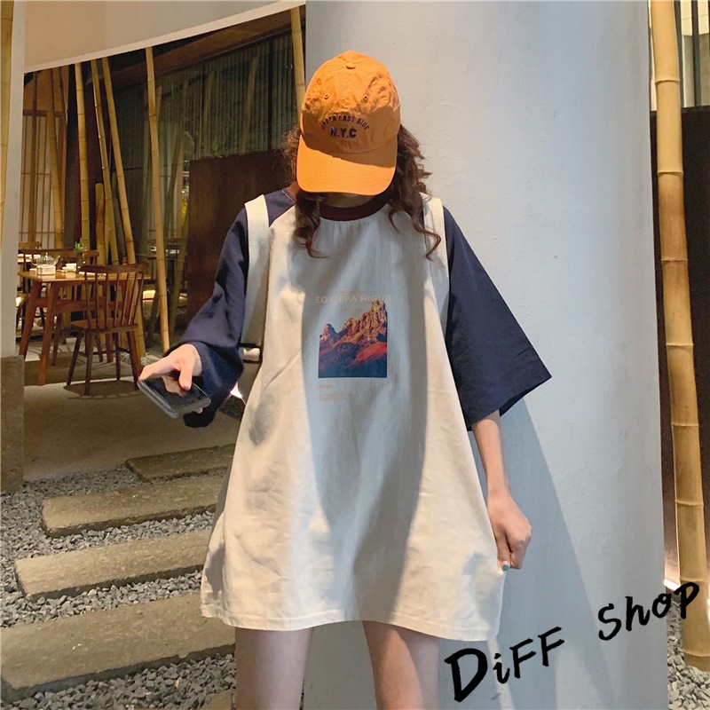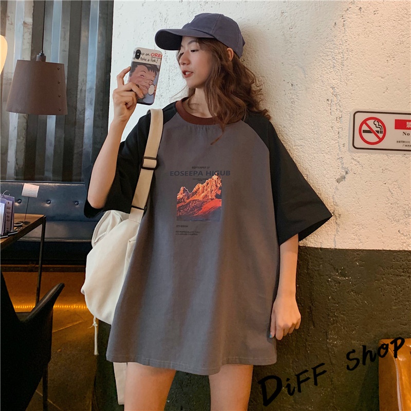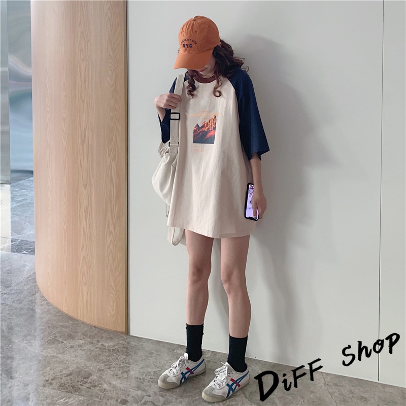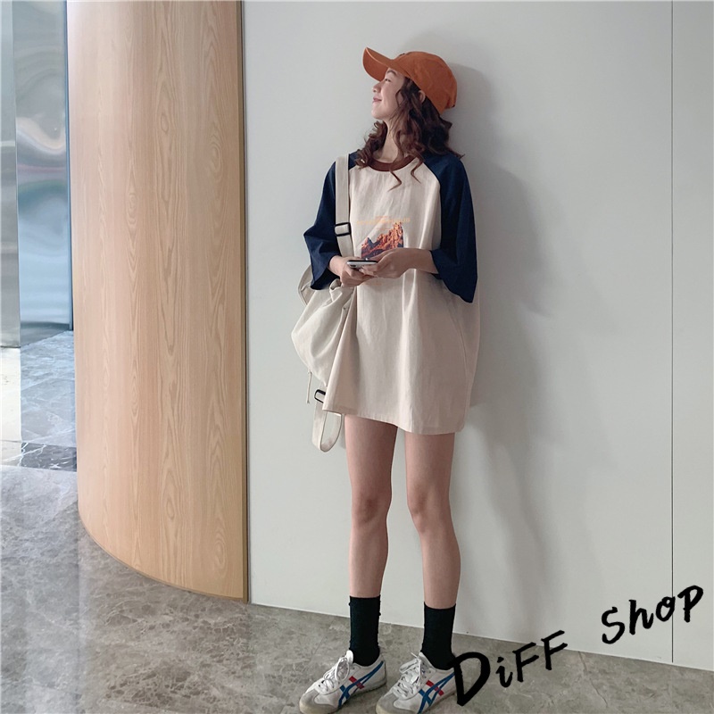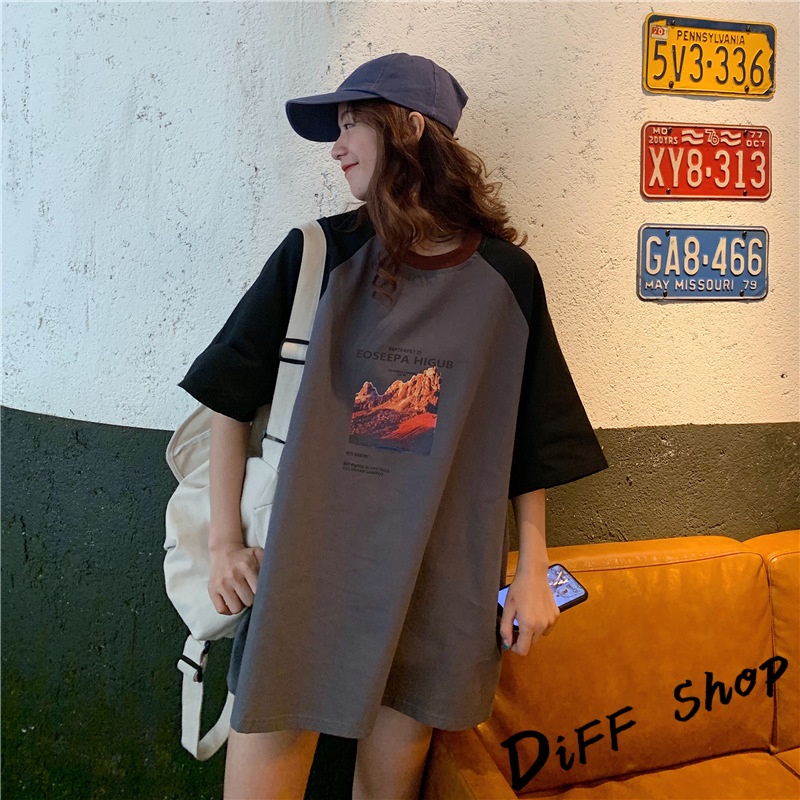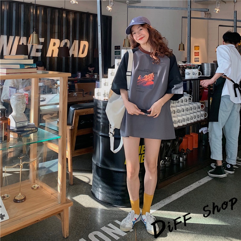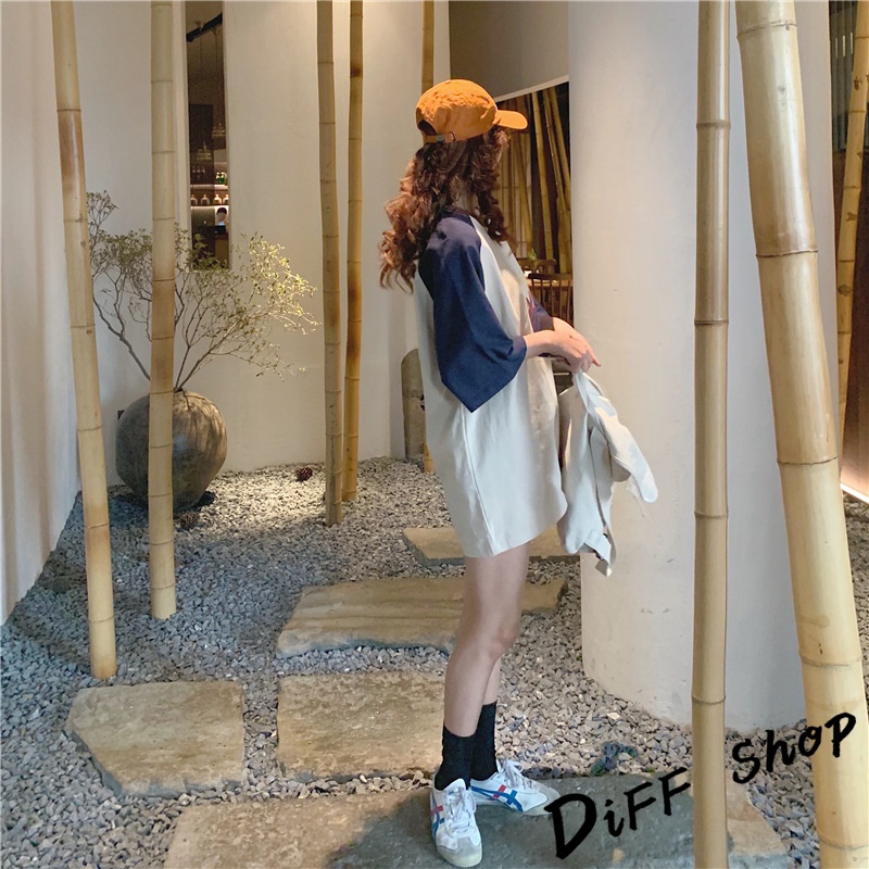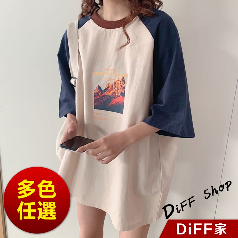 【DIFF】韓版拼接色連衣裙 長版上衣 短袖上衣 短袖t恤 女裝 顯瘦上衣 衣服 寬鬆上衣 素T【T357】【T357】杏色|【T357】灰色T-shirtsDiFF shop
