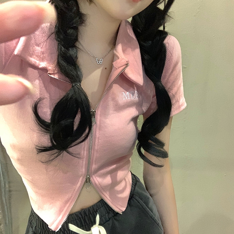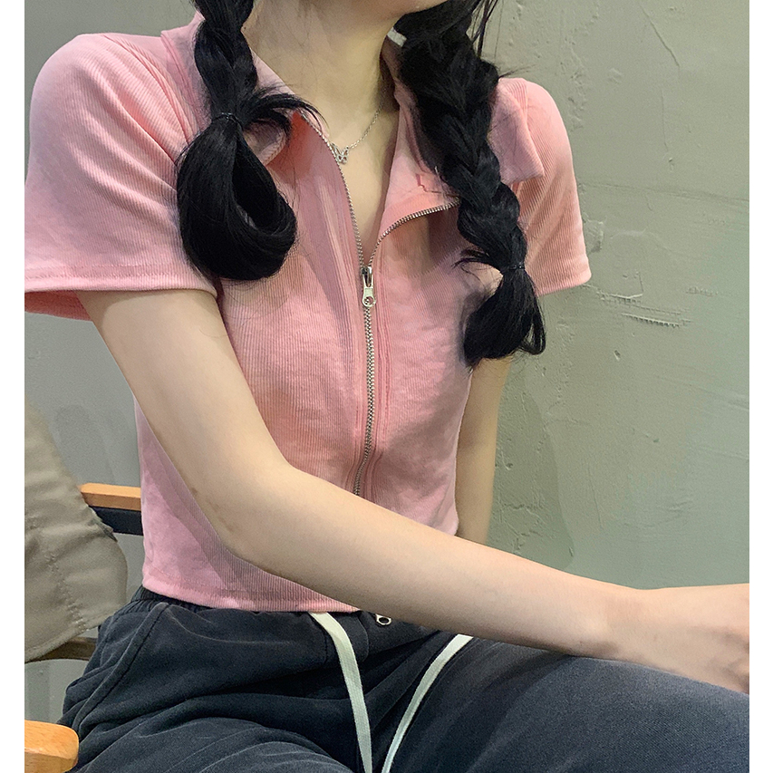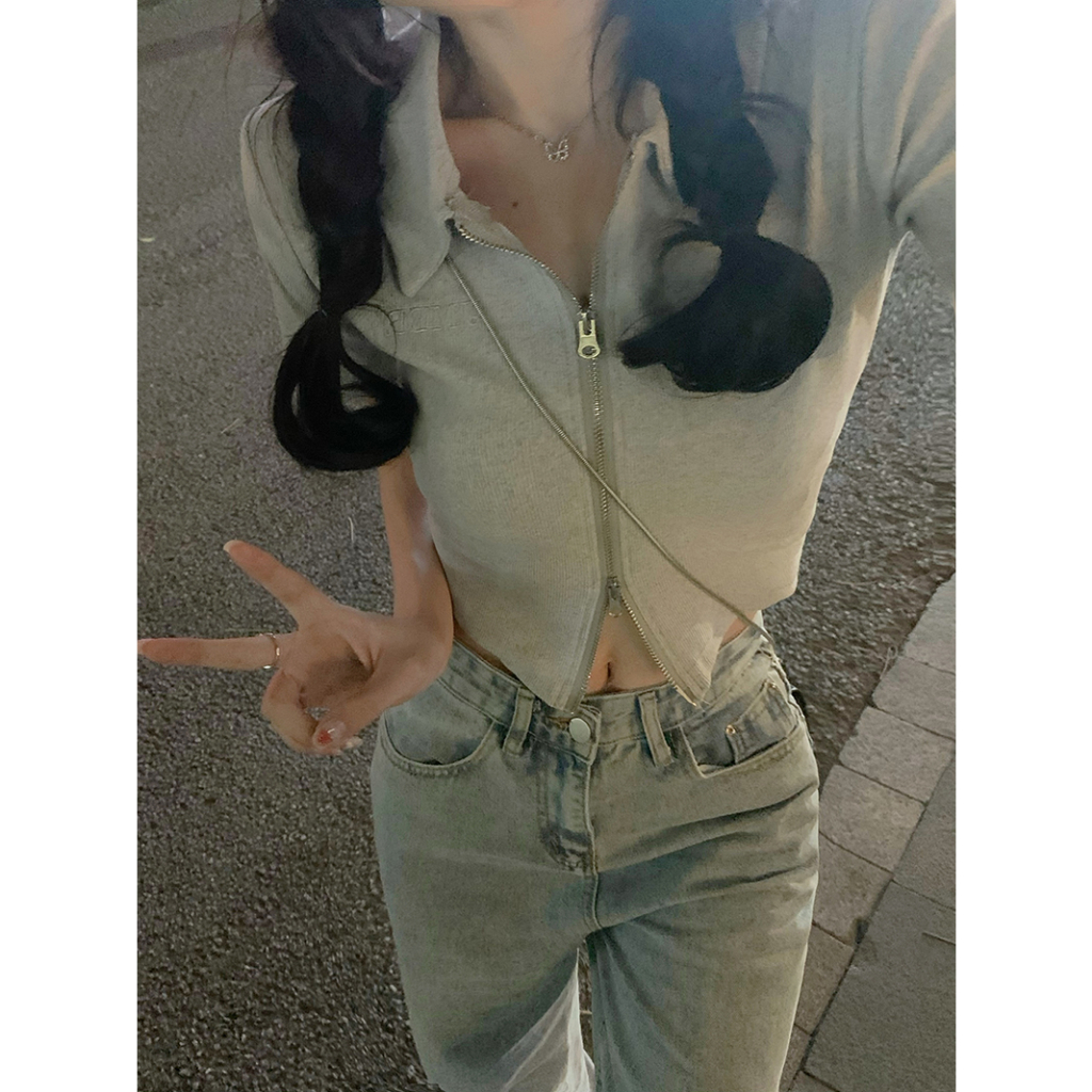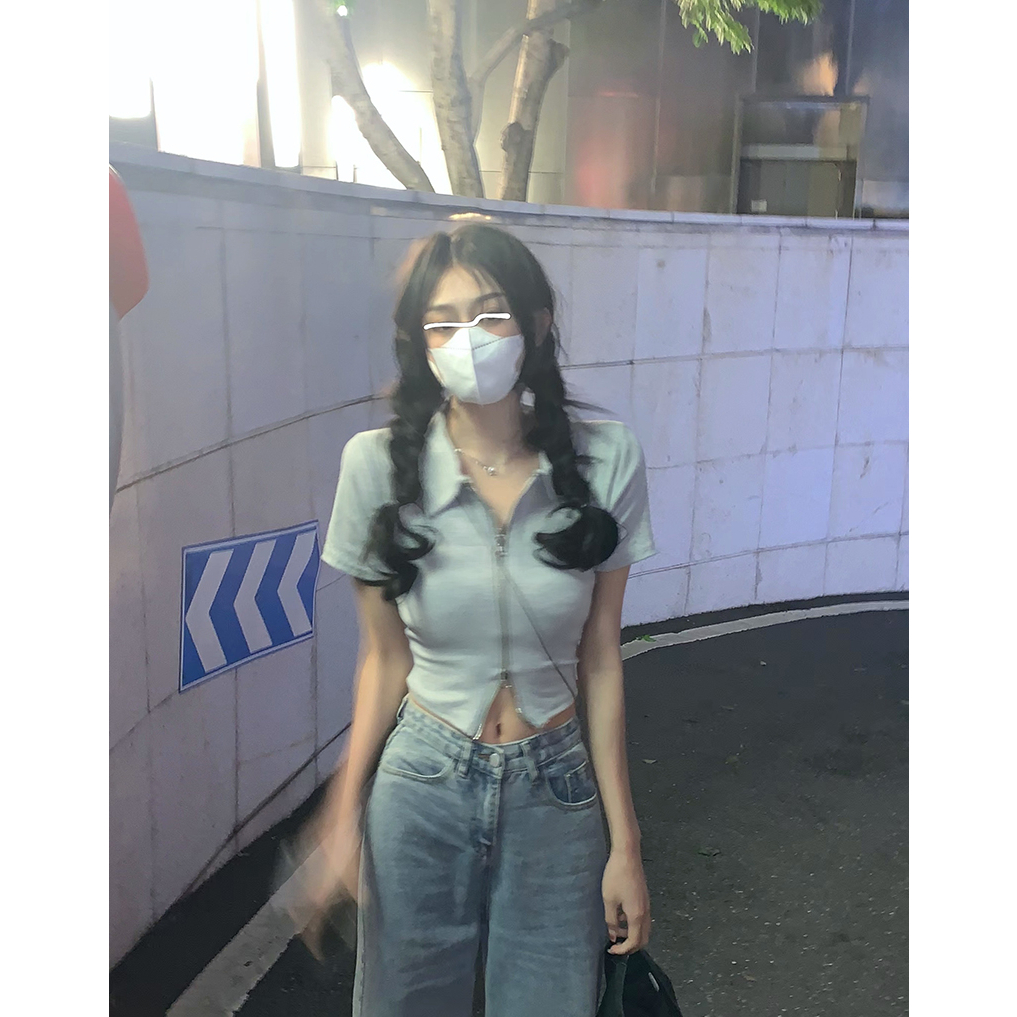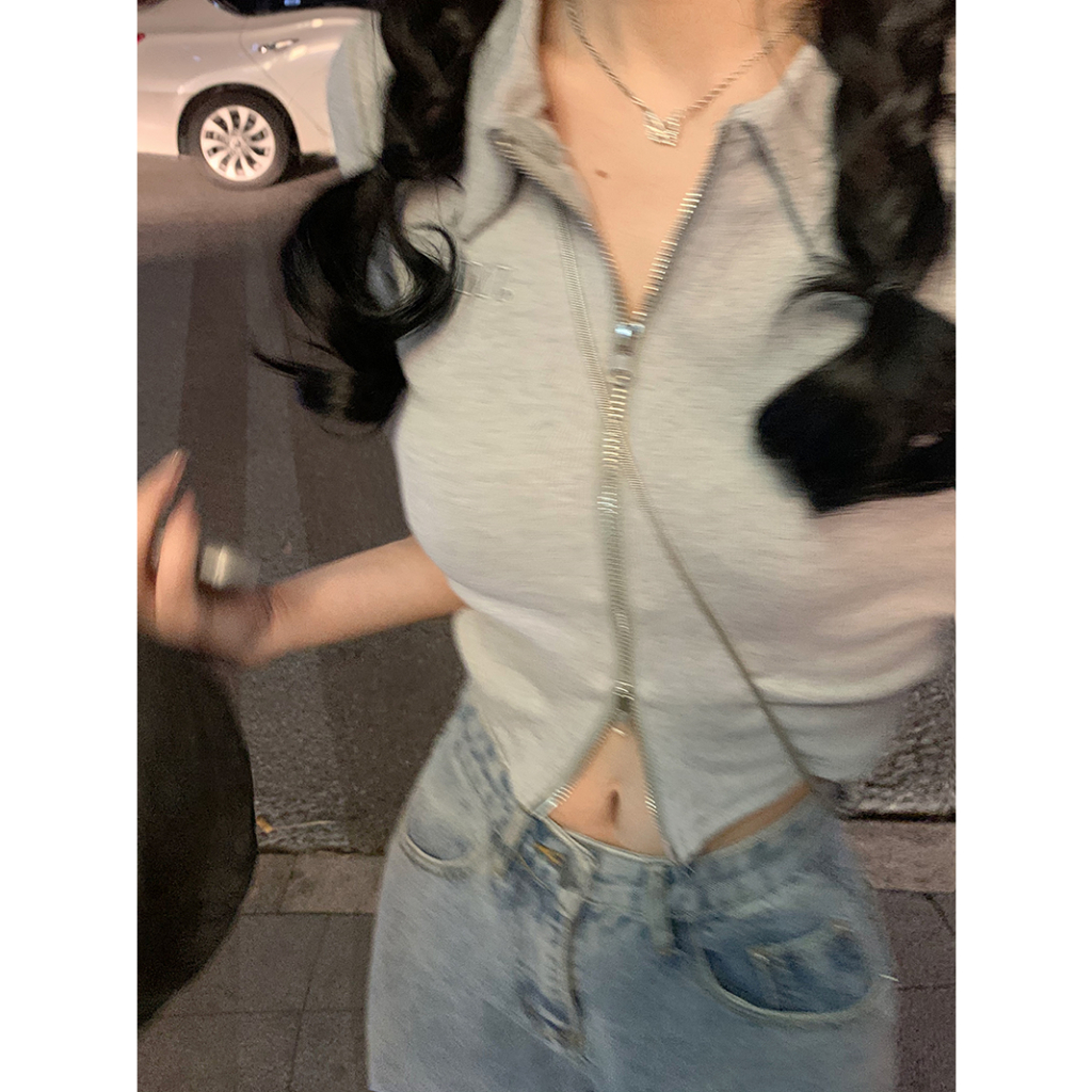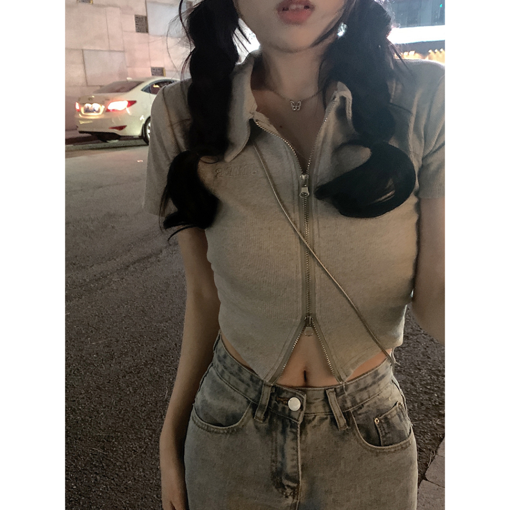 假期出遊必備!短版上衣 灰色上衣 短袖女 韓系穿搭 露肚上衣 短袖t恤 韓國短版上衣 辣妹 修身上衣 雙拉鍊上衣 衣服女圖片色,均碼【40~60kg】|圖片色【優質版】,均碼【40~60kg】T-shirtsCHAOO 台北原創服飾品牌