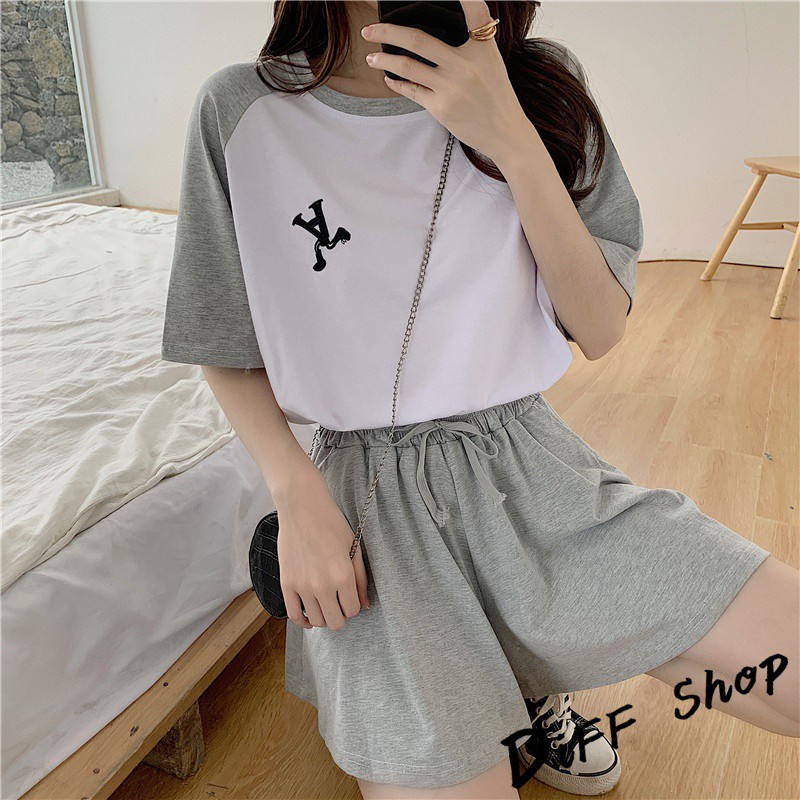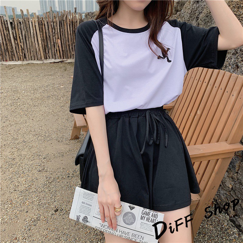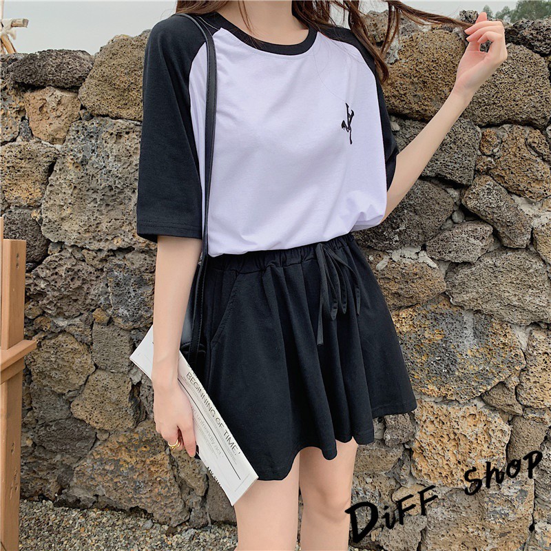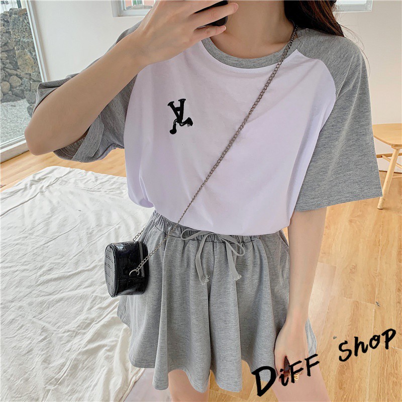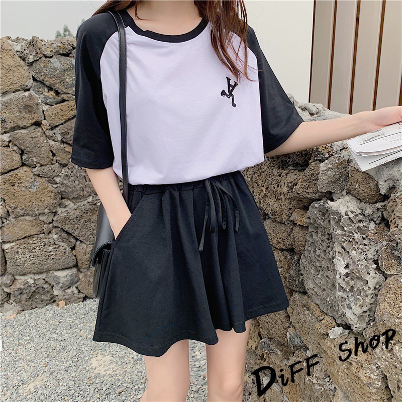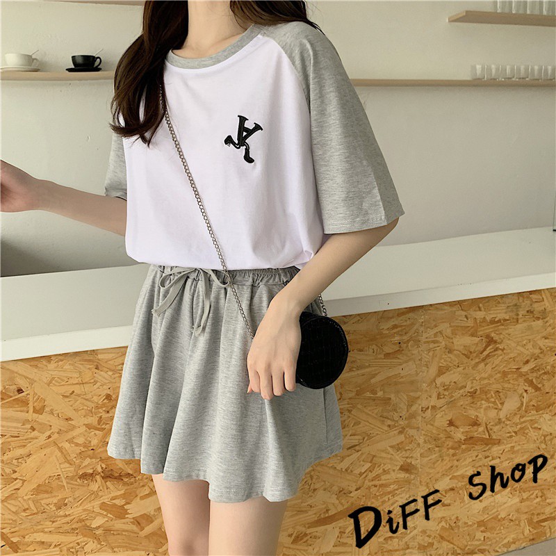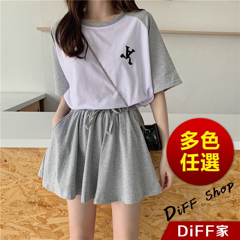 【DIFF】韓版寬鬆休閒運動套裝 兩件式 短袖上衣 短袖t恤 女裝 顯瘦上衣 衣服 褲子 裙子 短裙【S52】【S52】黑色|【S52】灰色Individual SetsDiFF shop