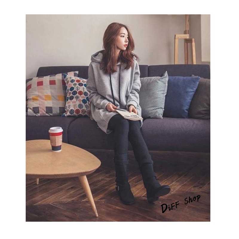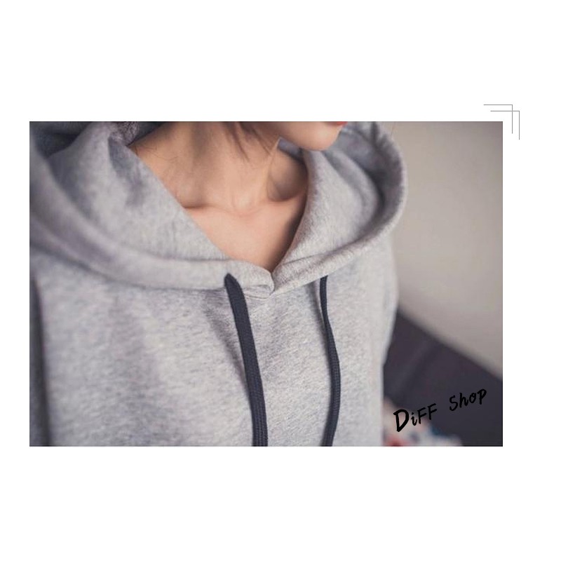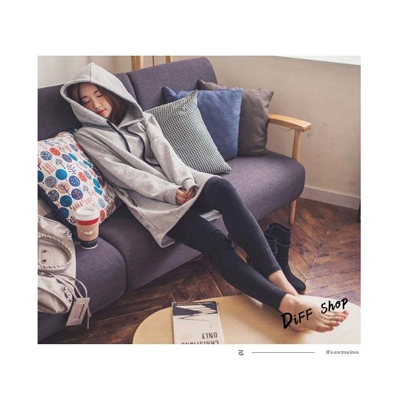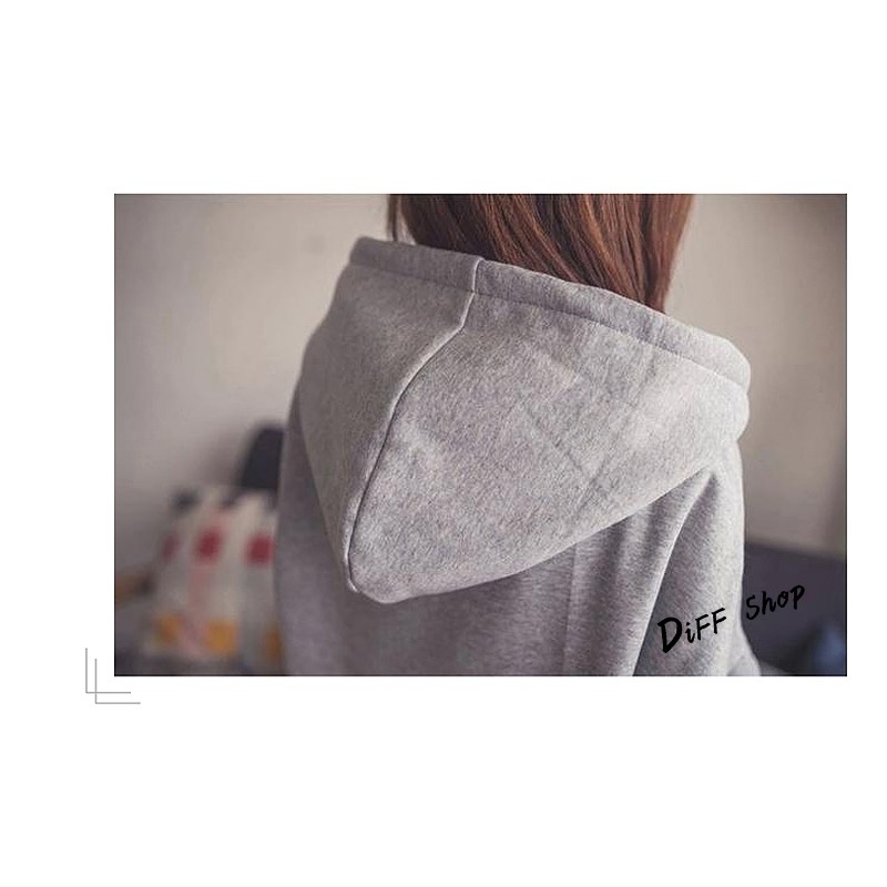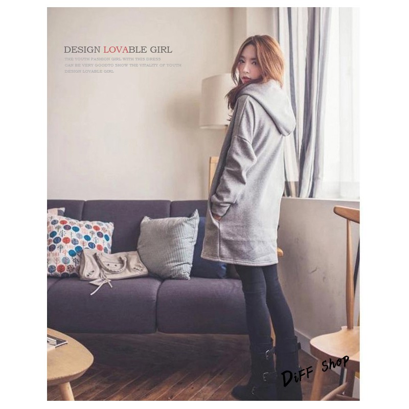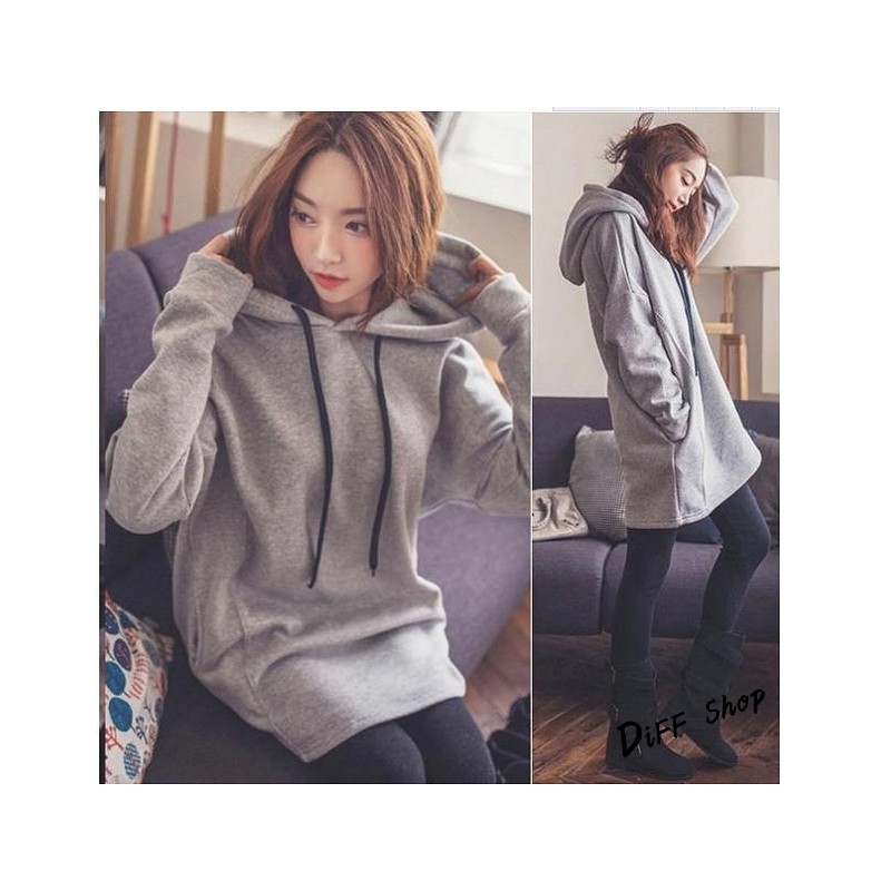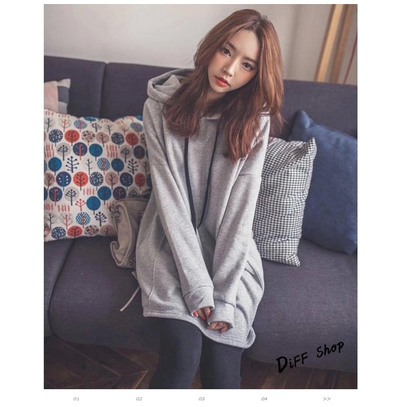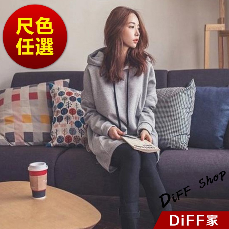 【DIFF】韓版素色內刷毛中長款連帽大學T 連帽上衣 帽T 連衣裙 寬鬆上衣 長袖上衣 長袖t恤 女裝 衣服【W47】【W47】灰色HoodiesDiFF shop