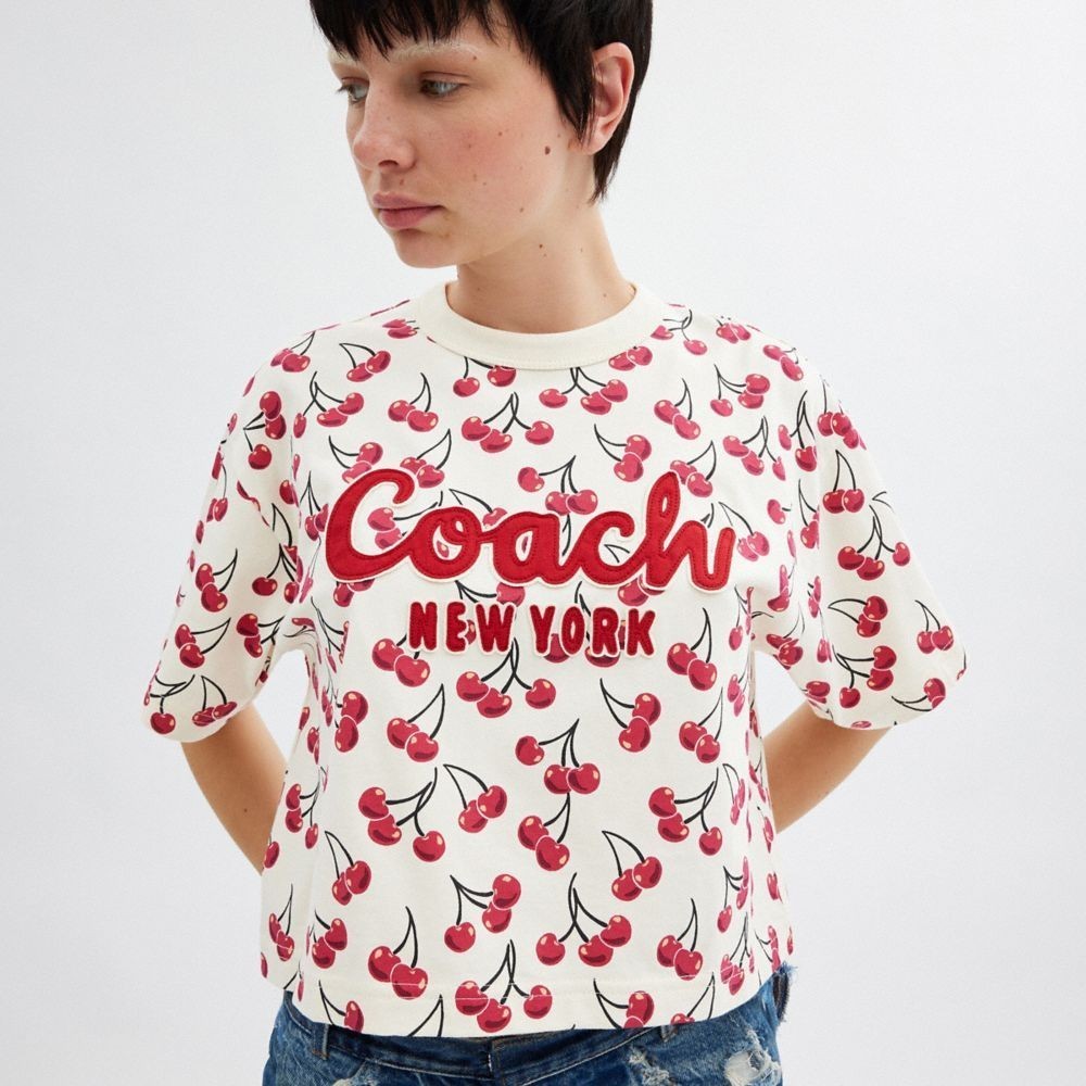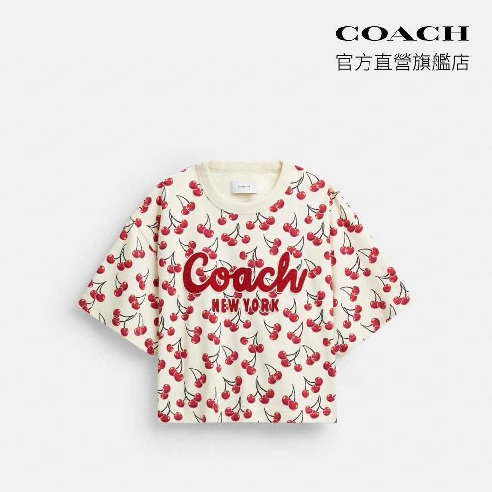 【COACH】棉質櫻桃印花草書體經典Logo短款T恤-紅彩(CZ502)|官方直營紅彩,XS|紅彩,S|紅彩,M|紅彩,L|紅彩,XLT-shirtsCOACH官方旗艦店