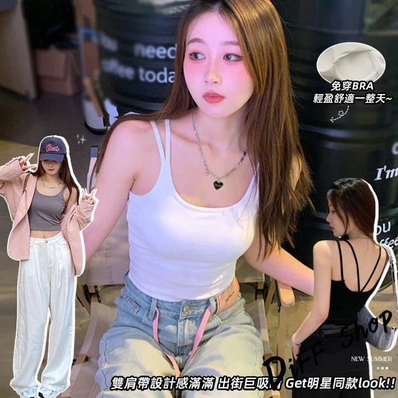 【DIFF】韓版美背交叉吊帶背心 帶胸墊免穿內衣 小可愛 女裝 衣服 短版上衣 小背心 夏天女裝 運動背心【V395】【V395】黑色|【V395】白色|【V395】灰色Tanks & CamisolesDiFF shop