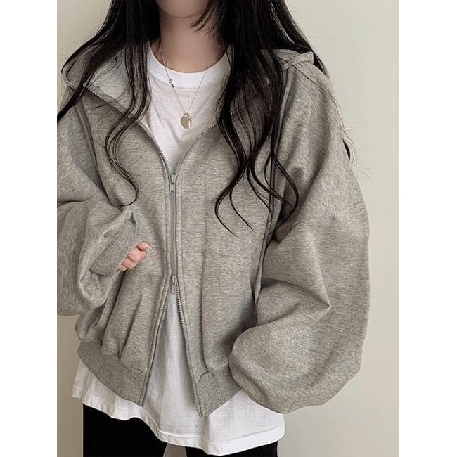 Codibook|韓國 moodloveroom 寬鬆連帽拉鏈外套[預購]拉鍊外套 連帽上衣 女裝灰色,Free|白色,Free|黑,Free|藏青,Free|灰米白色,FreeJacketsCodibook 韓國女裝購物平台