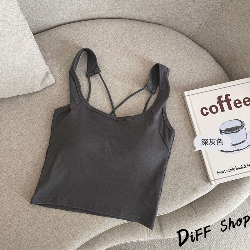 【DIFF】韓版交叉美背短版背心 上衣 小可愛 女裝 衣服 短版上衣 短板上衣 運動背心 運動上衣【V305】【V305】白色|【V305】深灰色|【V305】黑色Tanks & CamisolesDiFF shop