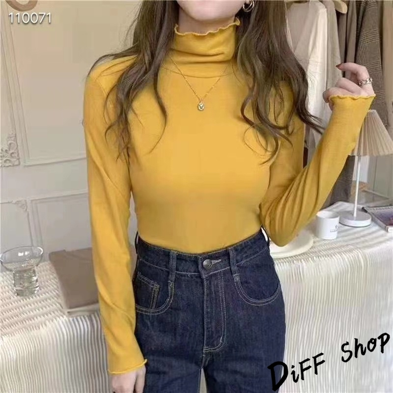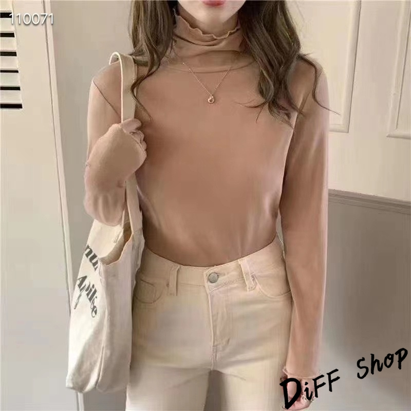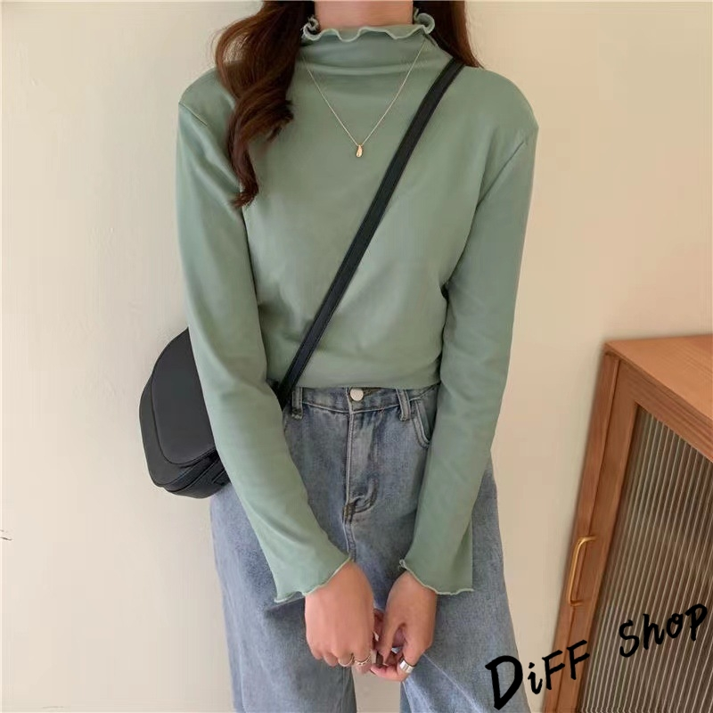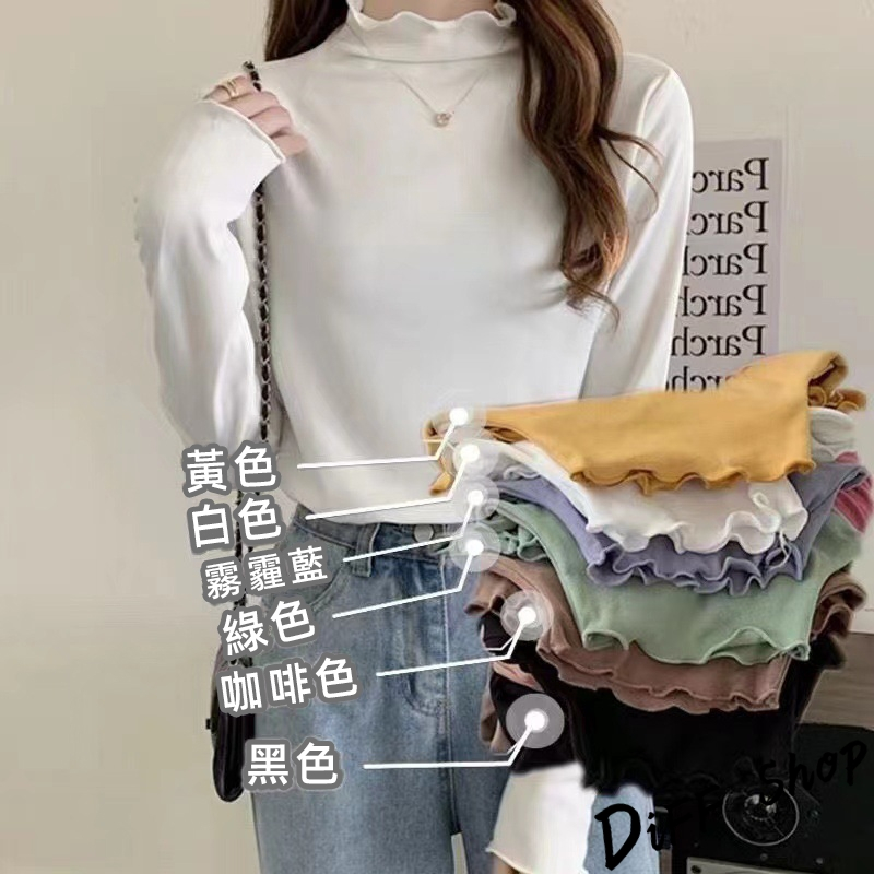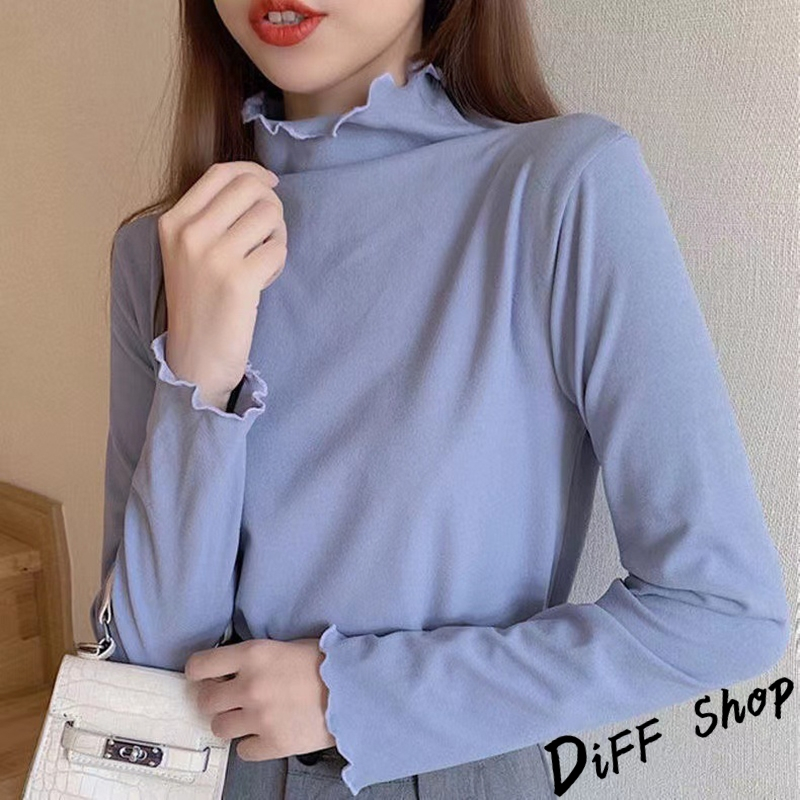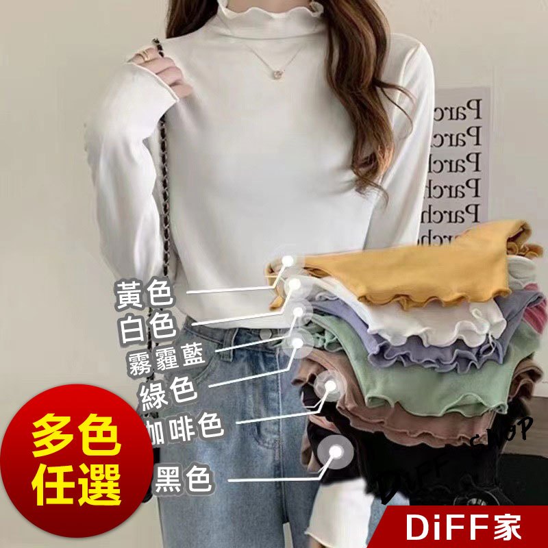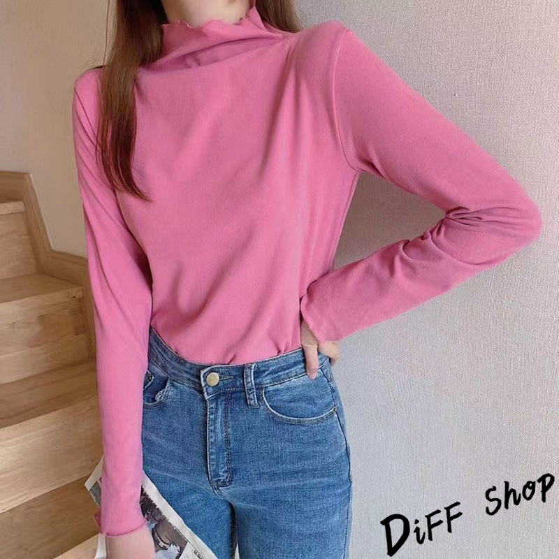 【DIFF】韓版花邊高領薄絨顯瘦內搭長袖上衣 女裝 衣服 寬鬆上衣 顯瘦上衣 長袖t恤 發熱衣 素T【W322 】【W322】紫色|【W322】黑色|【W322】白色|【W322】粉色|【W322】豆沙綠|【W322】咖啡Thermal InnerwearDiFF shop