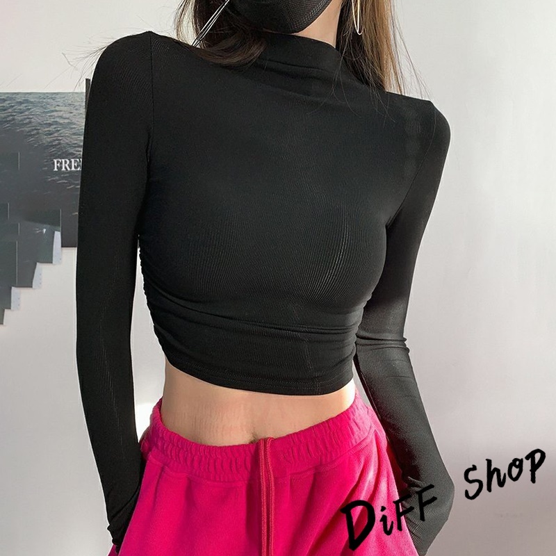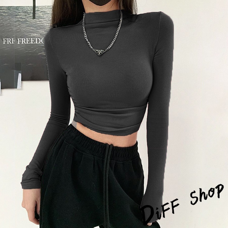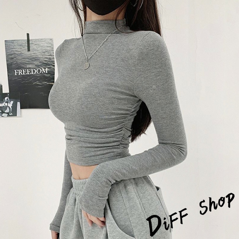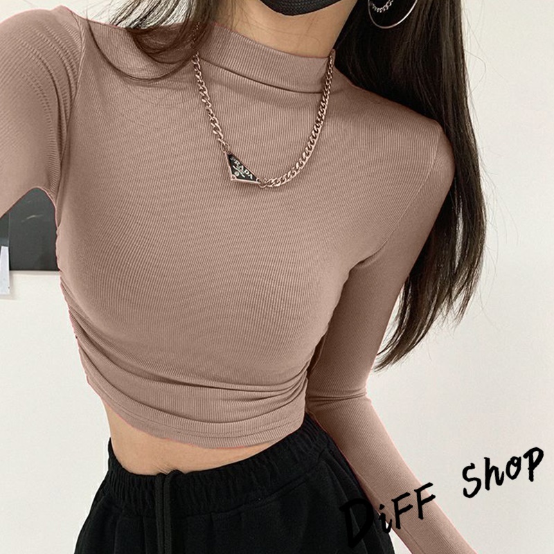 【DIFF】韓版半高領緊身收腰顯瘦長袖上衣 女裝 衣服 寬鬆上衣 顯瘦上衣 長袖t恤【W268】【W268】淺灰|【W268】黑色|【W268】白色|【W268】卡其|【W268】藏青|【W268】深灰DiFF shop