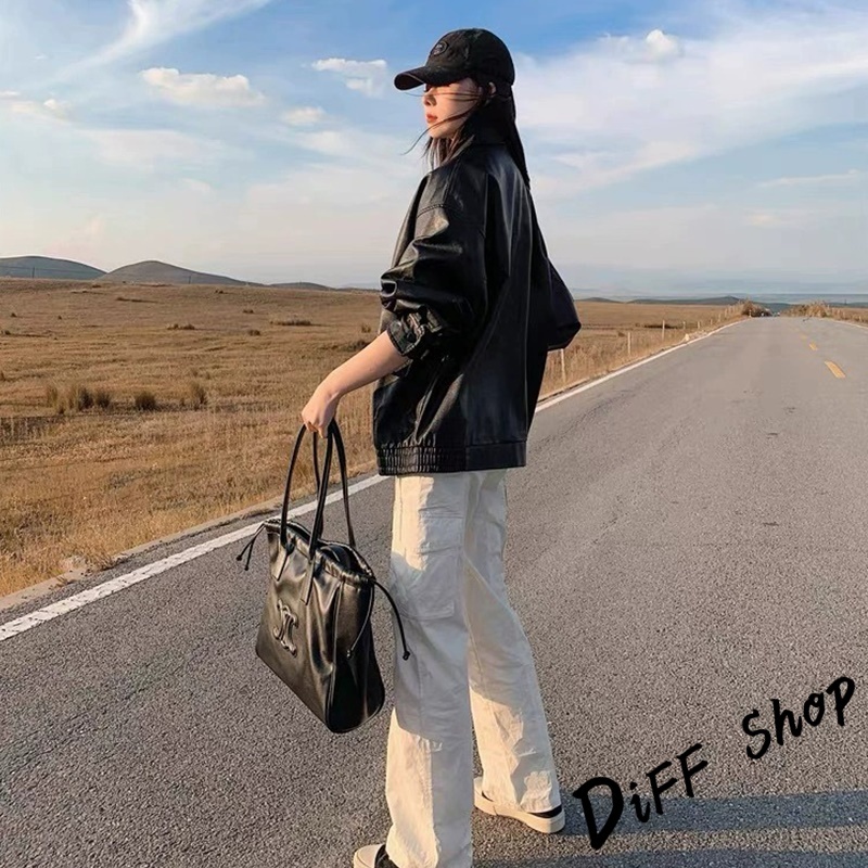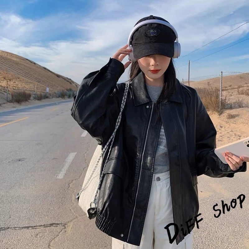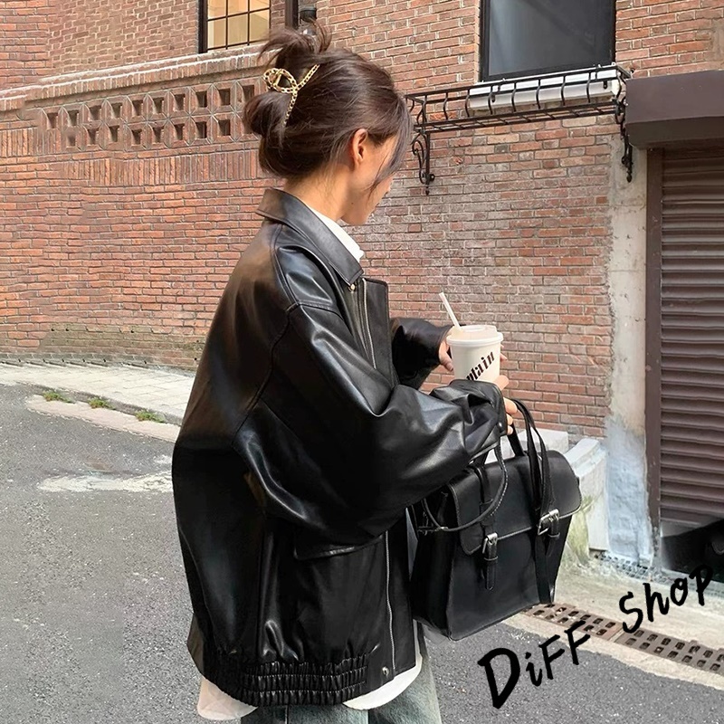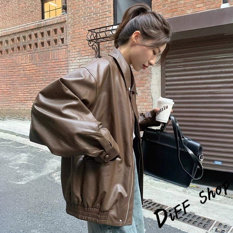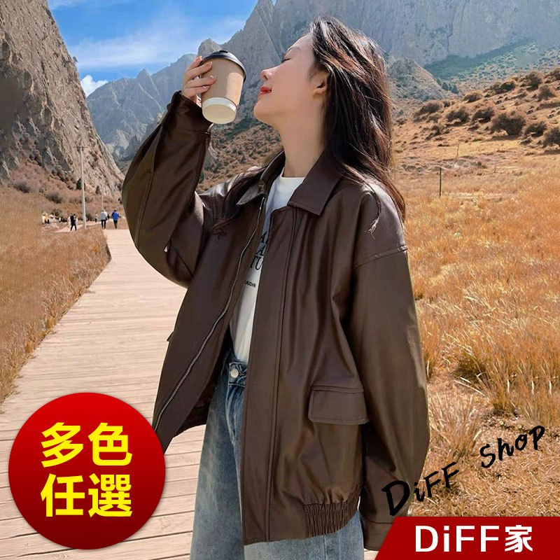 【DIFF】韓版寬鬆復古棕色皮衣 皮夾克 機車外套 皮外套 女裝 衣服 上衣 保暖外套 保暖上衣 冬天外套【J382】【J382】黑色|【J382】咖色JacketsDiFF shop