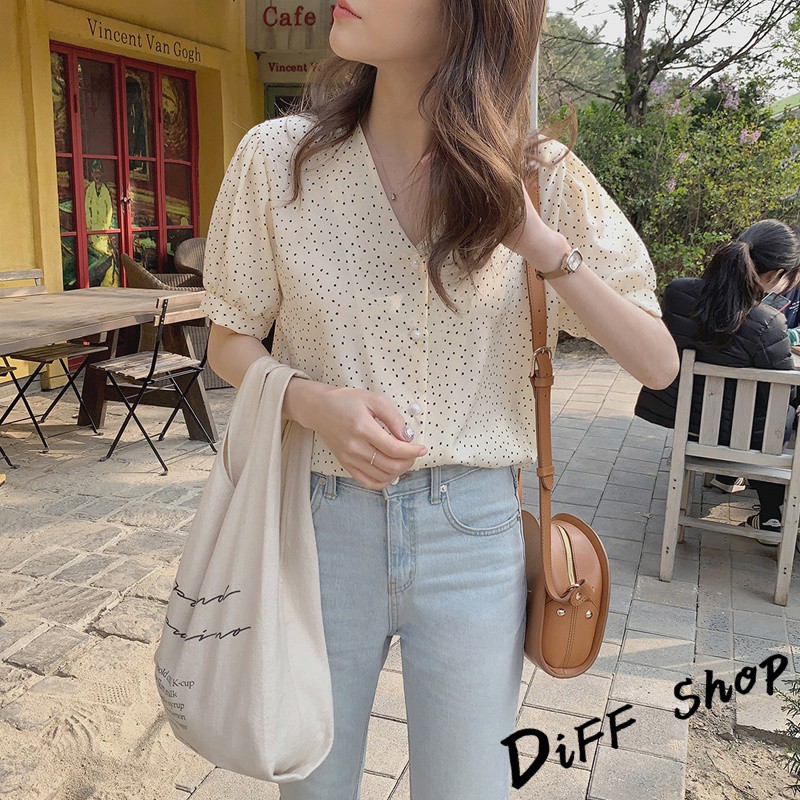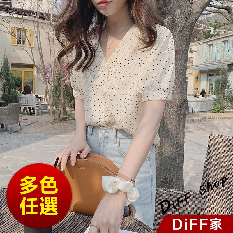 【DIFF】韓版氣質寬鬆顯瘦雪紡v領百搭 短袖上衣 短袖t恤 女裝 顯瘦上衣 衣服 寬鬆上衣【T329】【T329】杏色|【T329】黑色T-shirtsDiFF shop